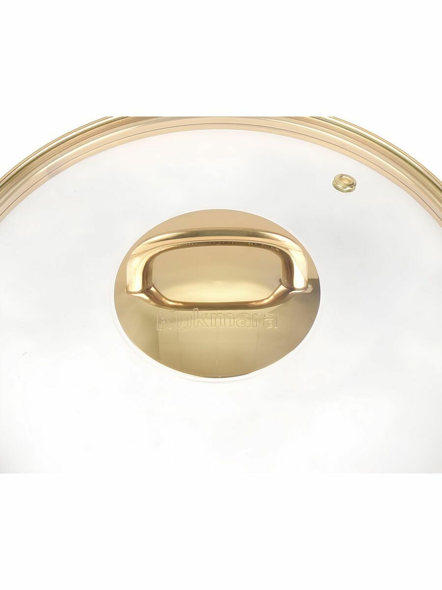 Крышка стеклянная Kukmara 240мм, с ободом и пароотводом из нерж. стали под золото и ручкой-кнопкой