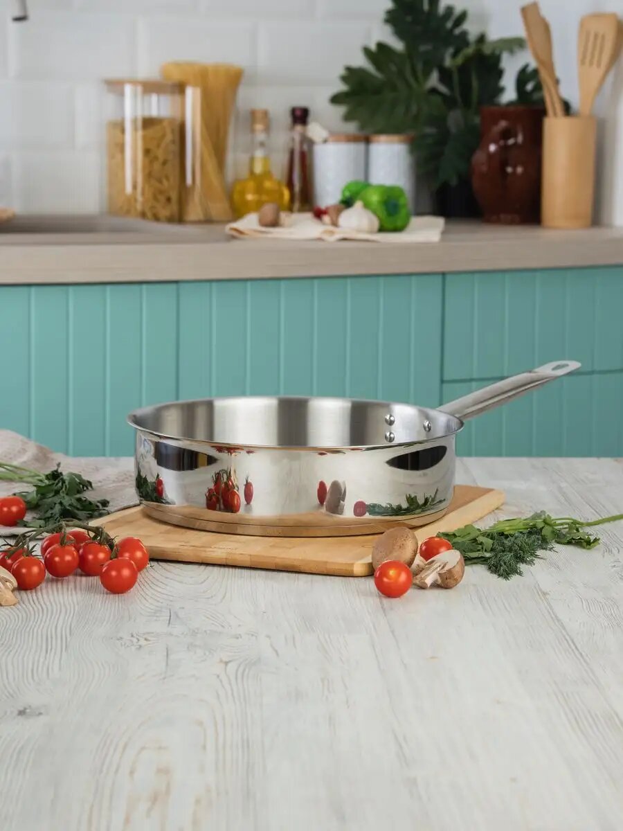 Сковорода сотейник глубокая 34см, индукция, нерж