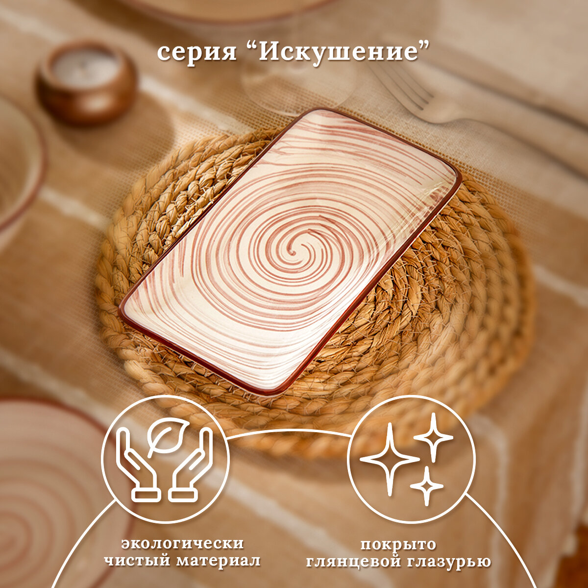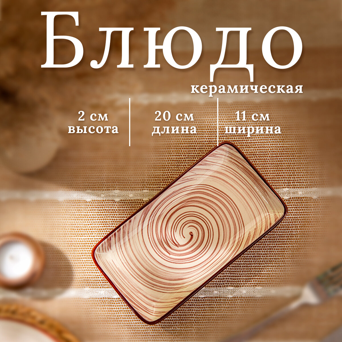 Блюдо керамическое прямоугольное «Искушение», 20×11×2 см для подачи