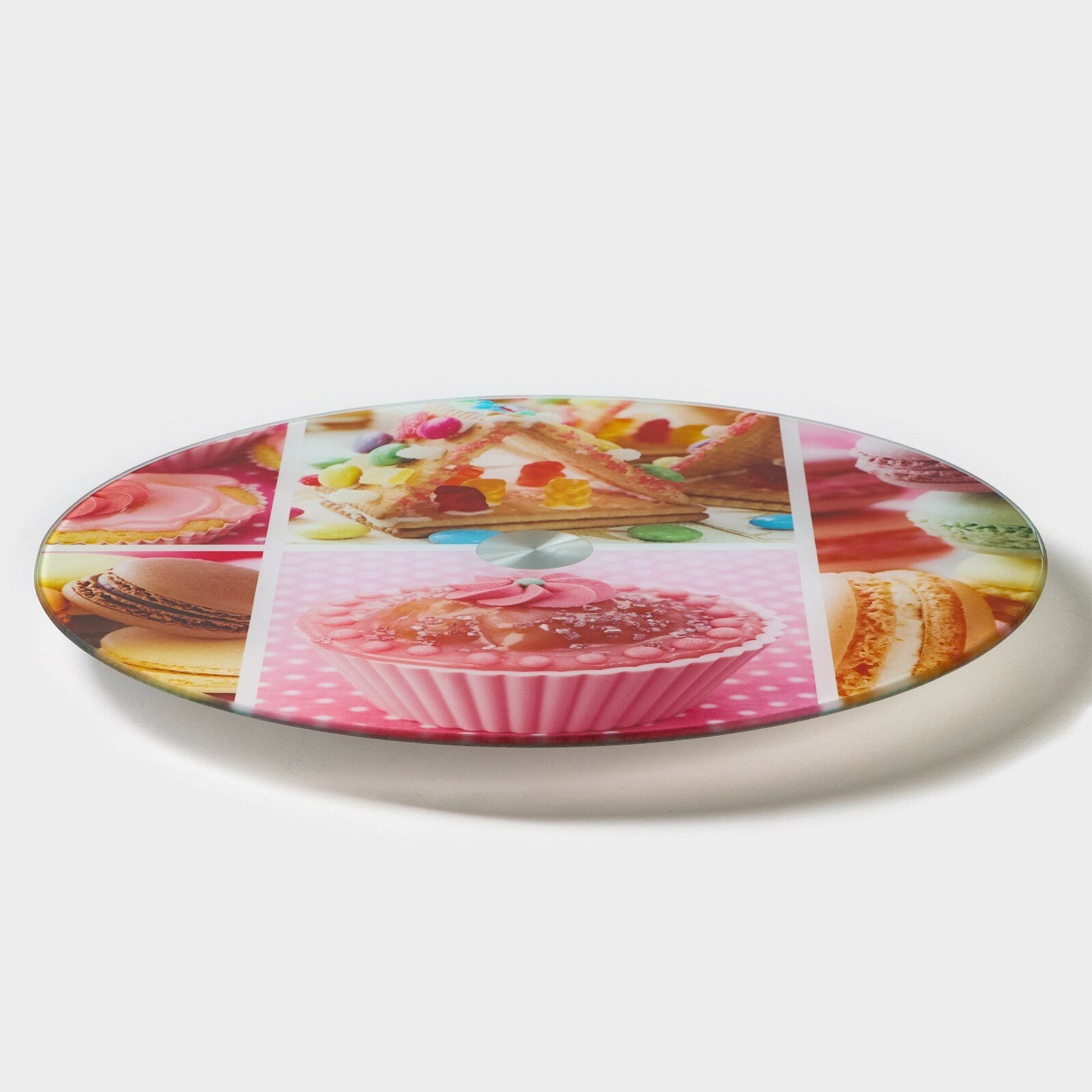 Подставка для торта Доляна «Сладости», d=32 см, вращающаяся, стекло, разноцветная