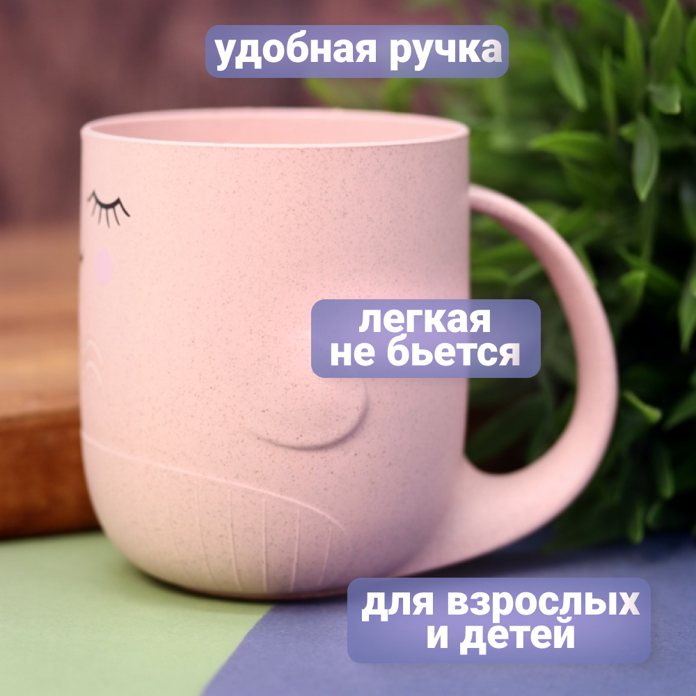 Купить Кружка для чая пластиковая детская "Cute face", розовый, 300 мл