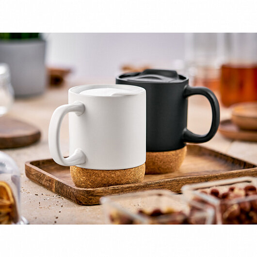 Кружка WALMER Domino 400мл черная с крышкой керамика, пробка