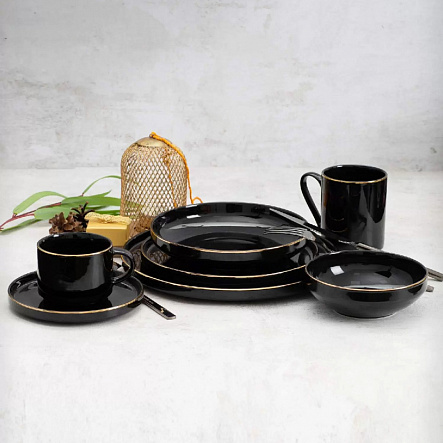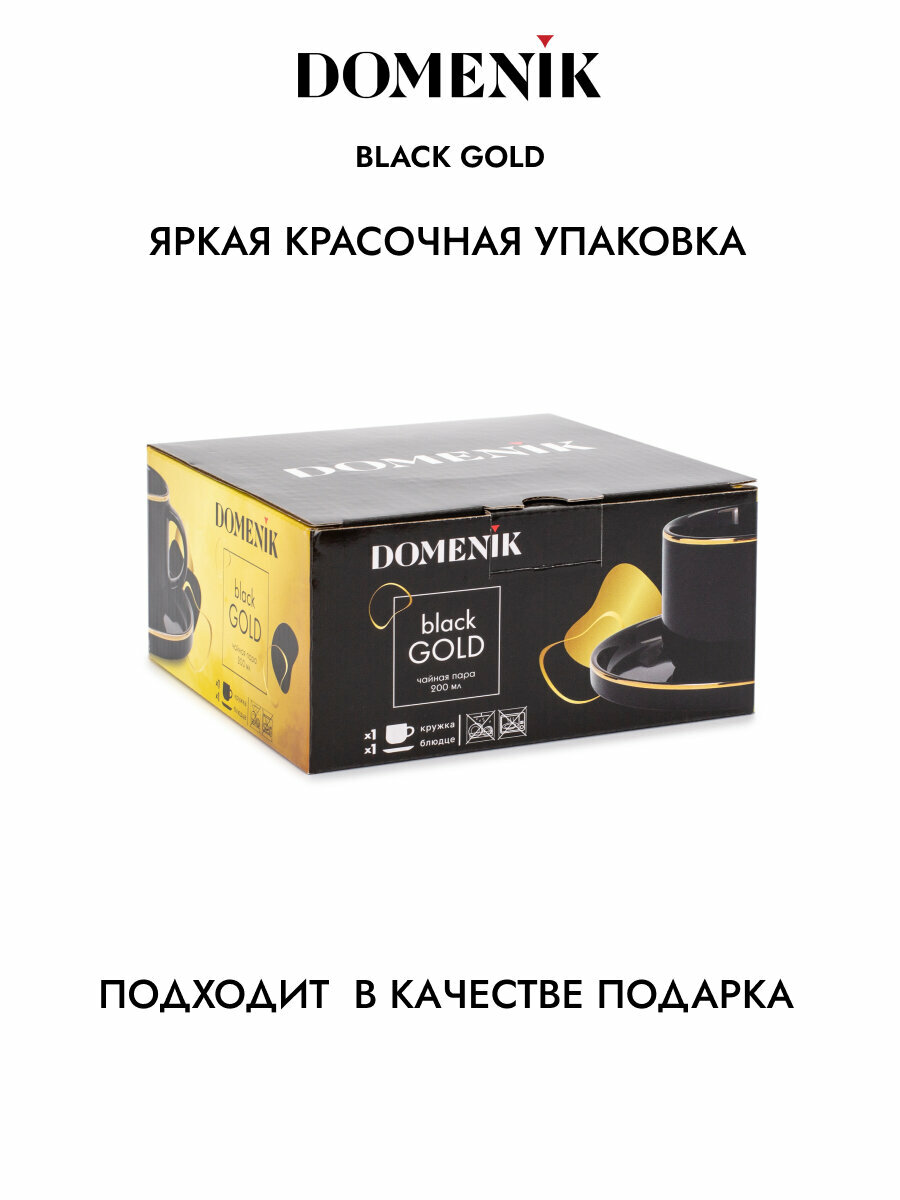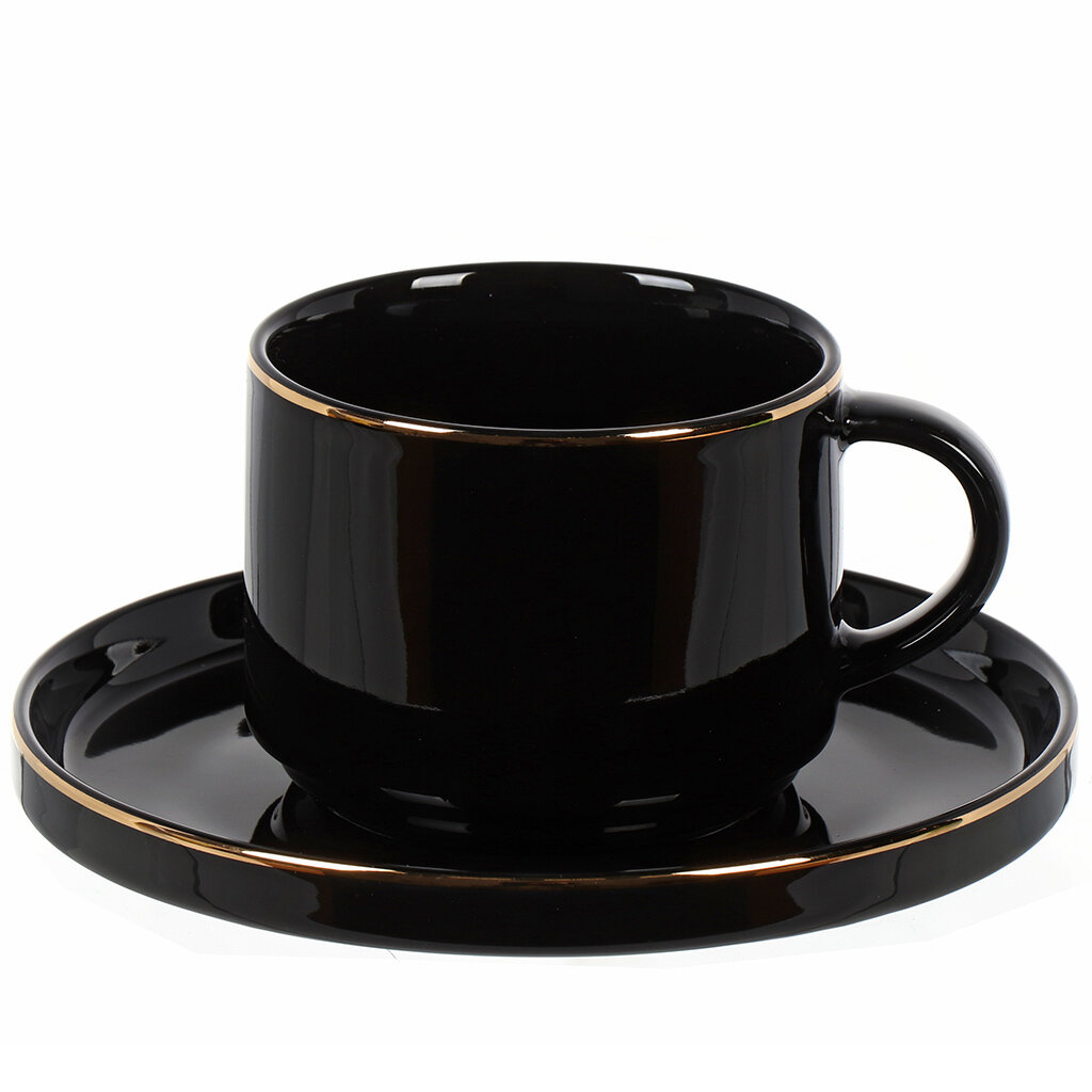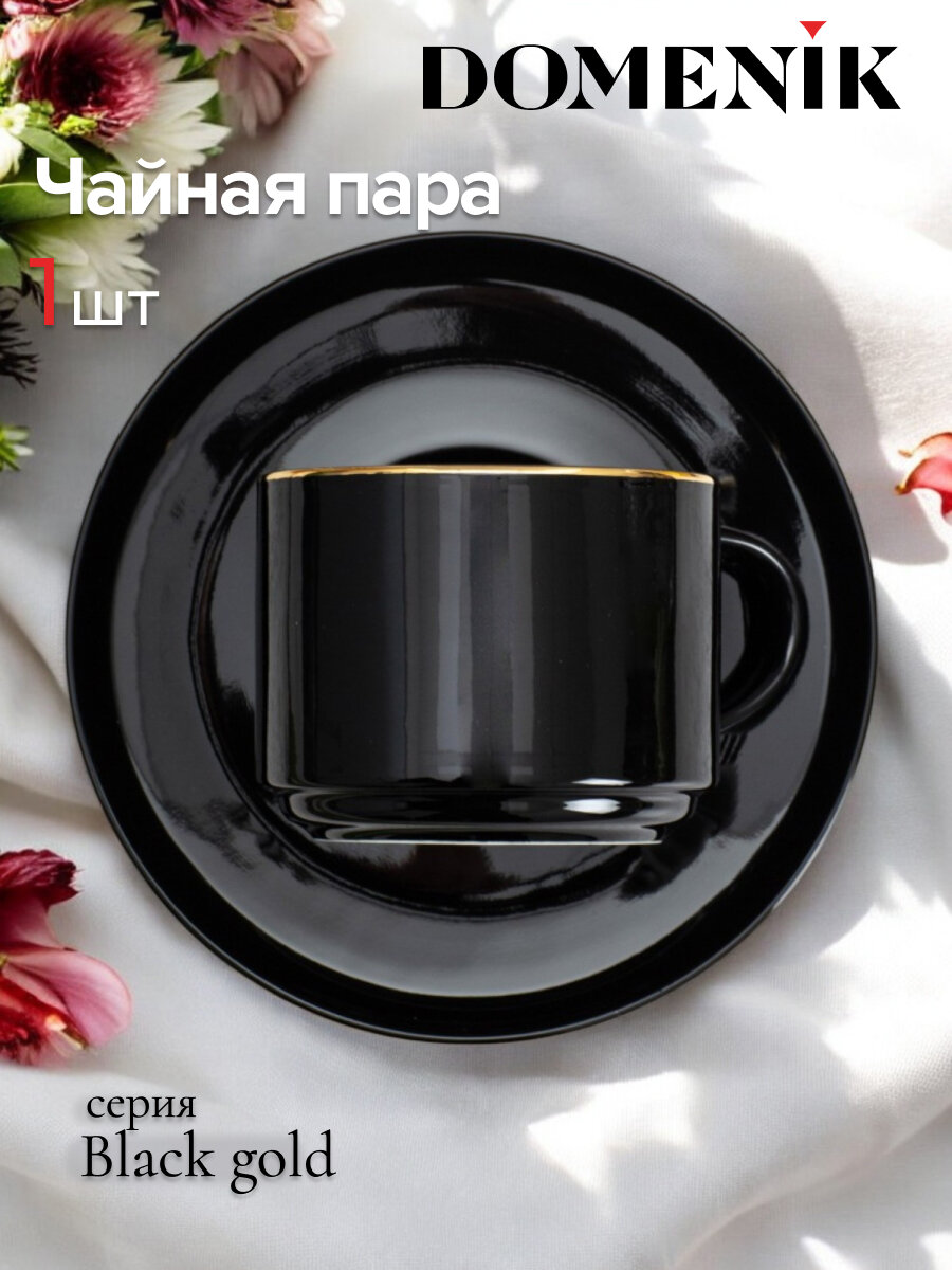 Чайная пара Domenik BLACK GOLD 200мл, 2 предмета, 200 мл, 15 см блюдце интересное: