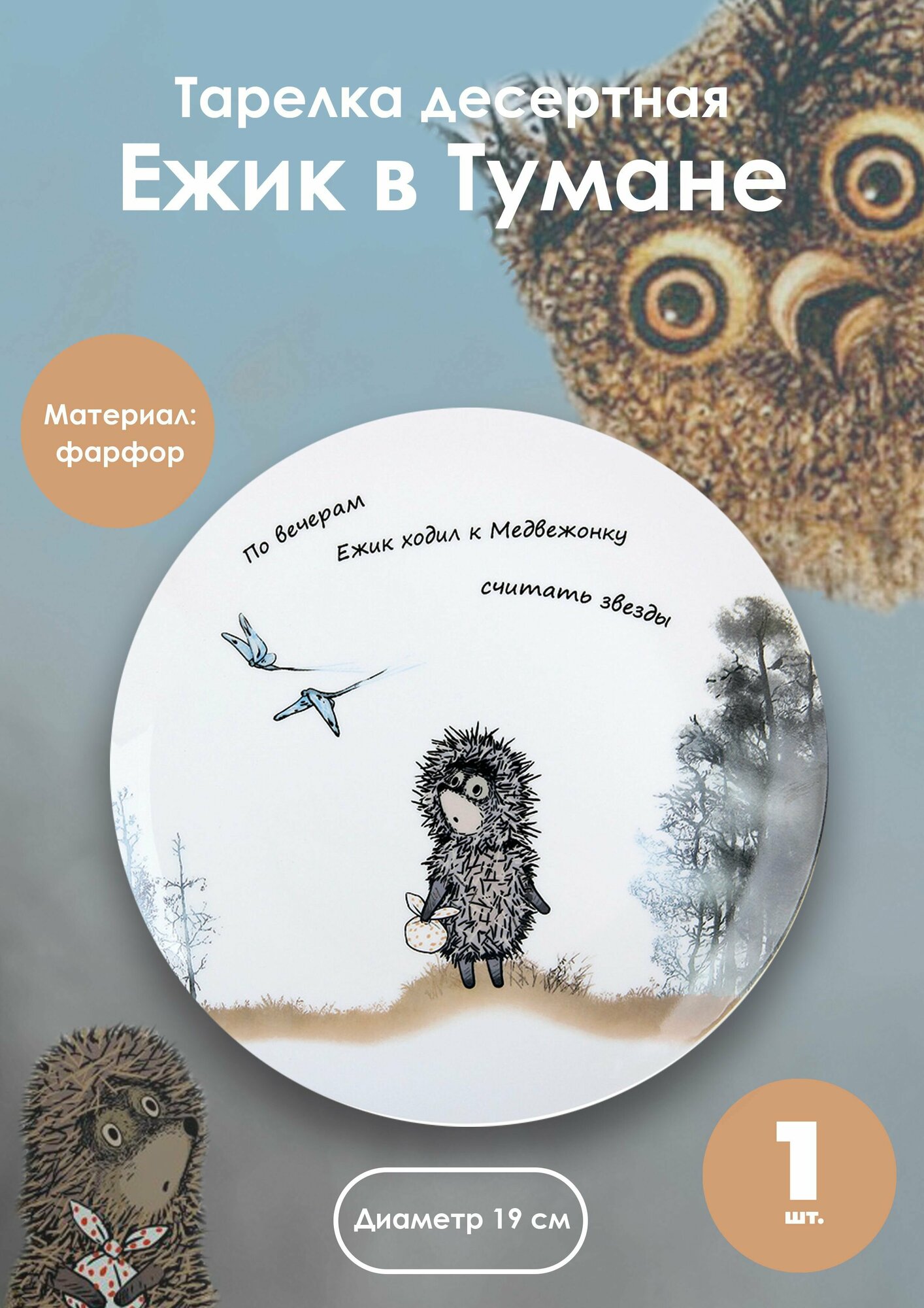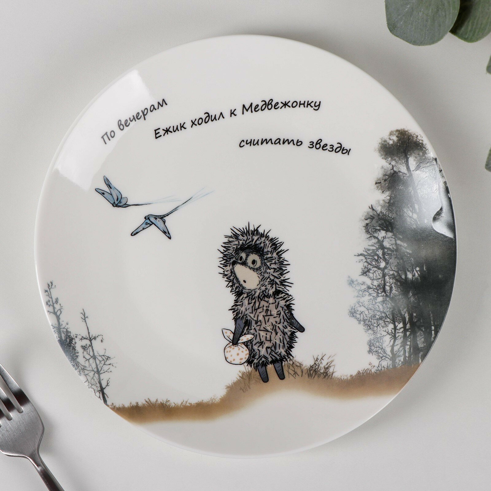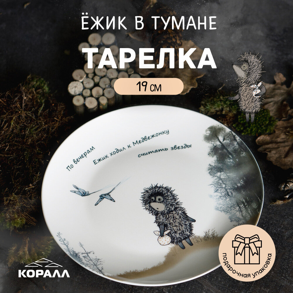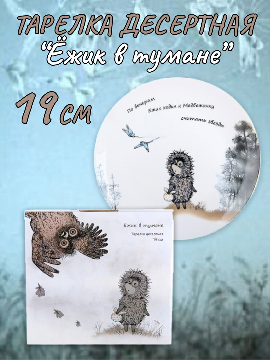 Тарелка десертная 19см "Ежик в тумане", в подарочной упаковке интересное: