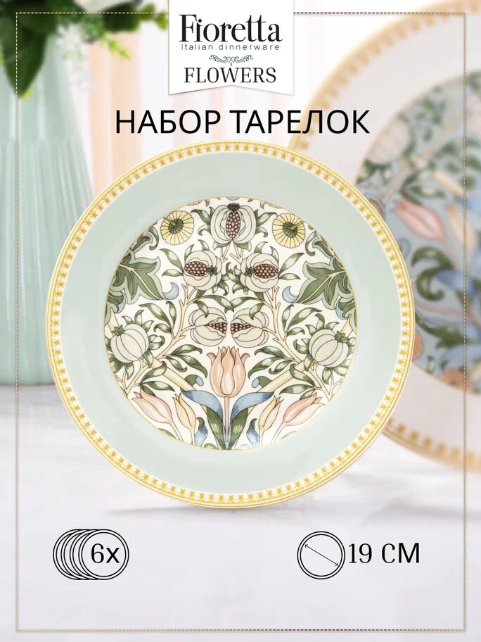 Купить Набор десертных тарелок Fioretta FLOWERS 6 штук 19см, китайский фарфор