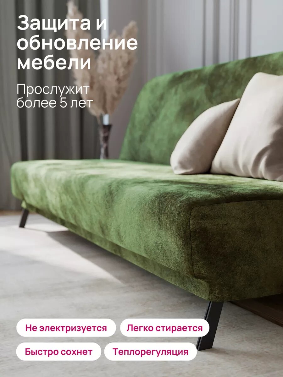 Чехол ALBERICA, для трехместного дивана, велюр, темно-оливкового цвета интересное: