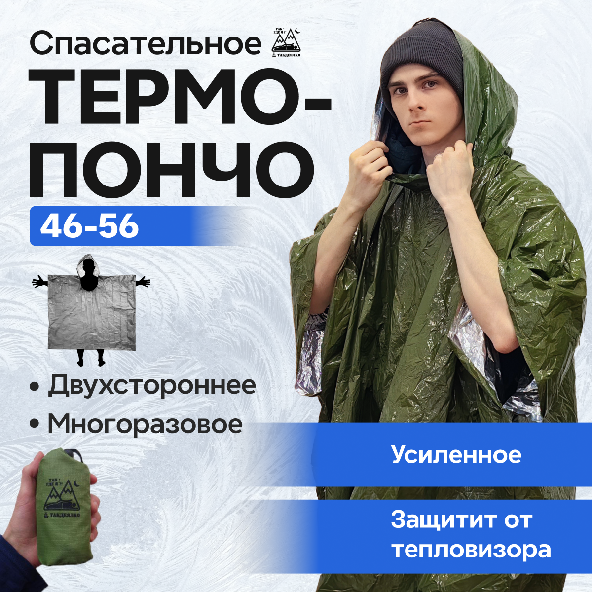 СохранитьТермо пончо ТакДеялко, защитное, универсальное, специальное, изотермическое, спасательное, с защитой от тепловизора, зеленое/олива интересное: