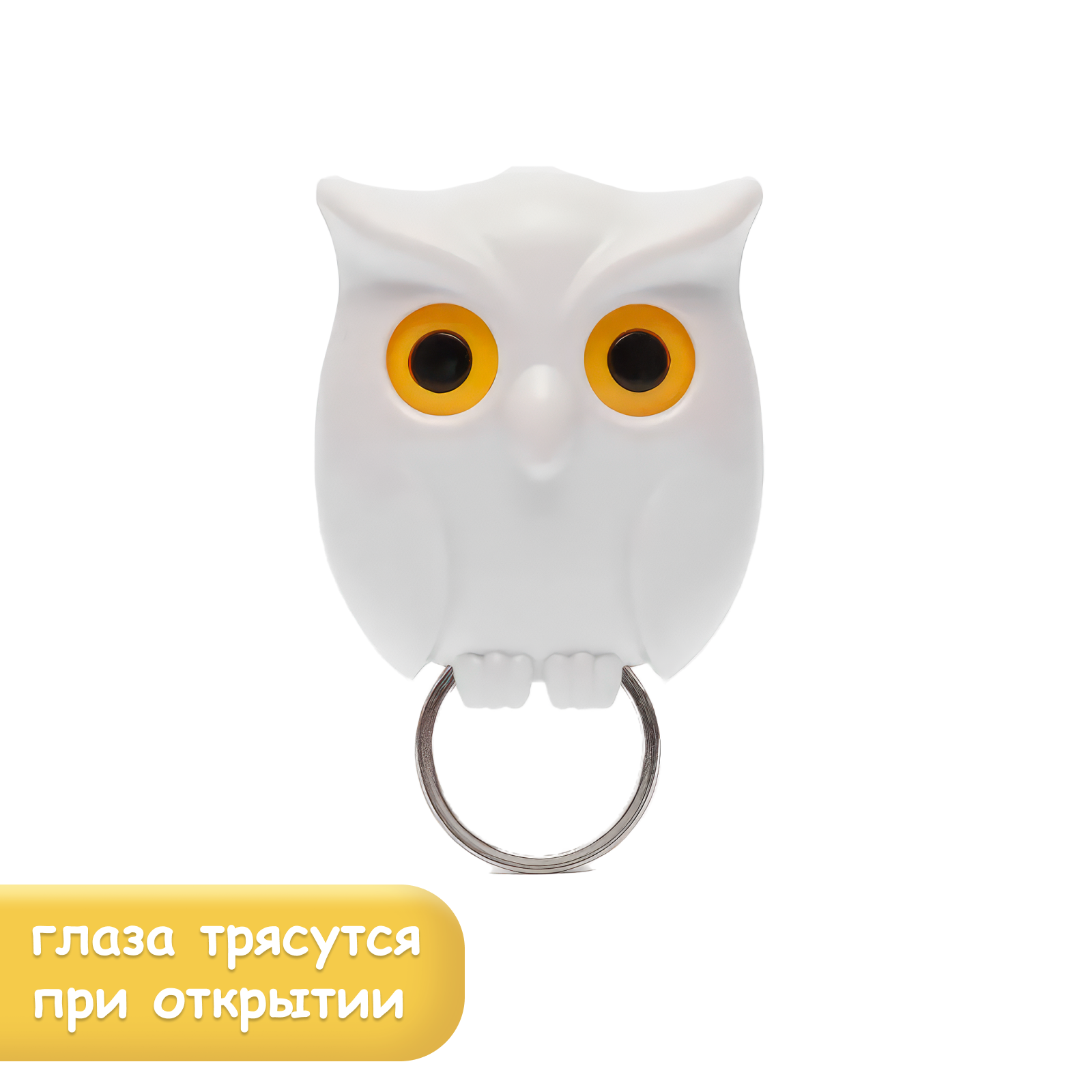 Ключница белая магнитная настенная в прихожую для дома, крючок для ключей самоклеящийся сова с глазами