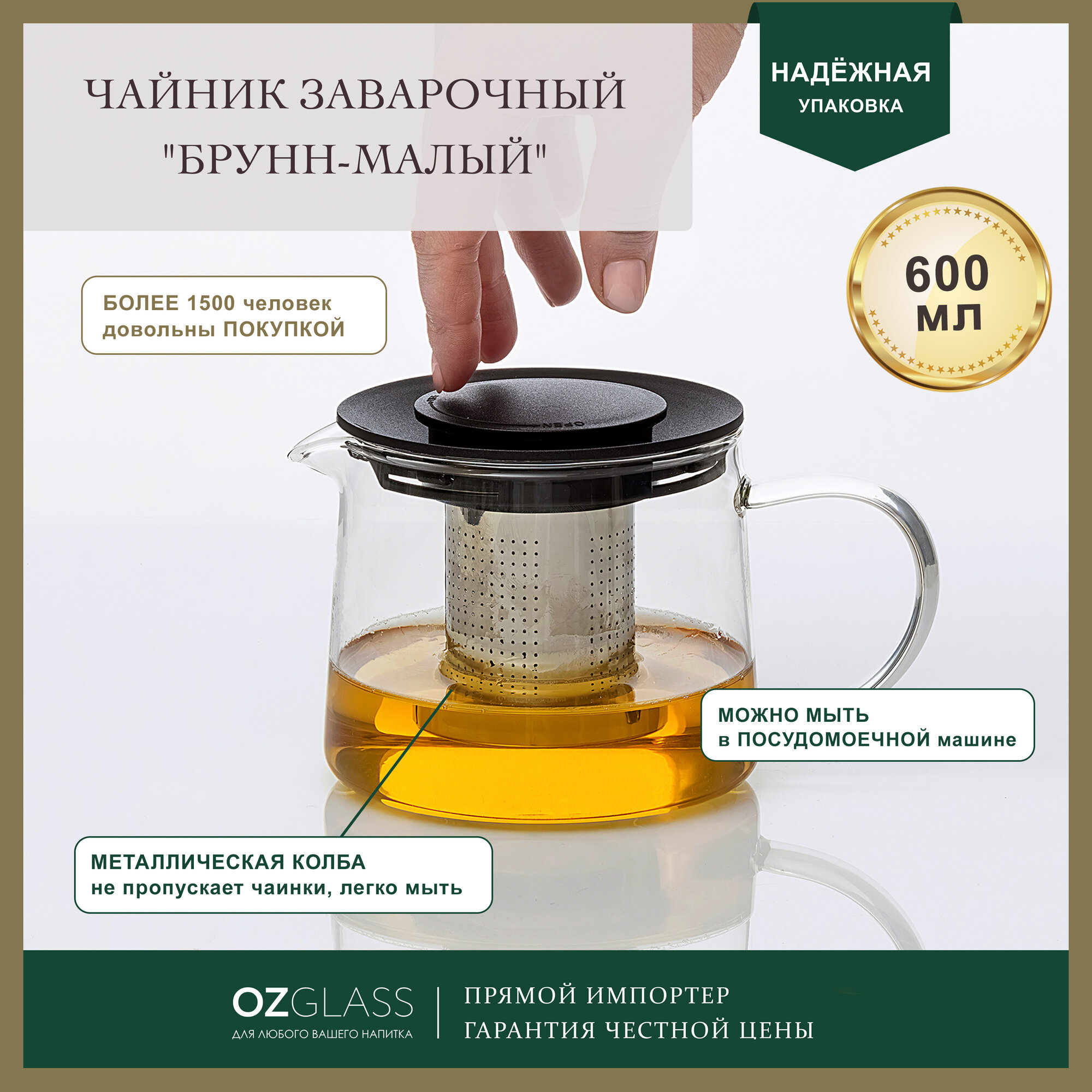 Купить Заварочный чайник OZGLASS Брунн, с металлической колбой, 600 мл