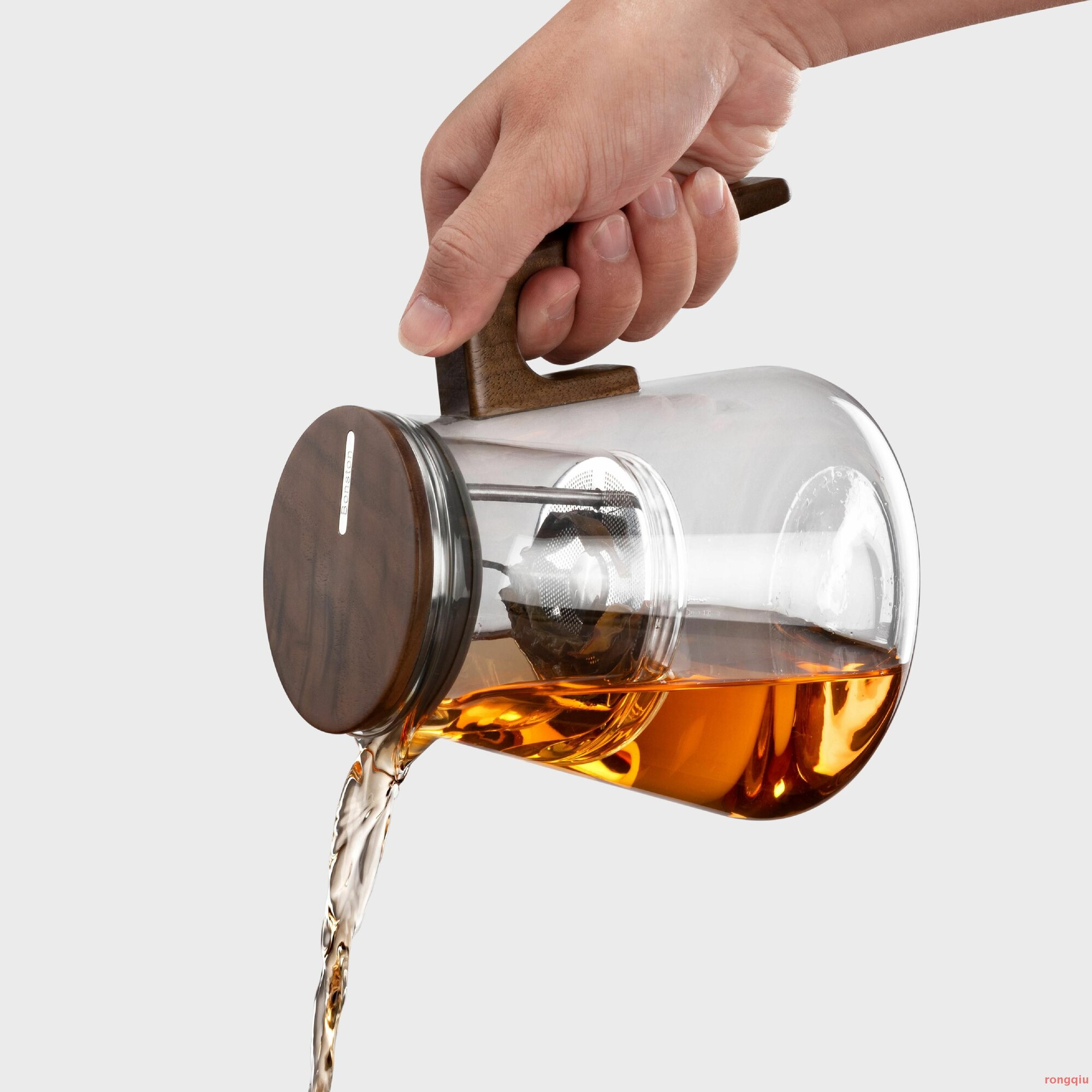 Стеклянный заварочный чайник Гунфу с кнопкой SAMADOYO 800 мл, Типод проливной Чайник для заваривания чая с фильтром ситечком, Заварочный магнитный чайник с крышкой и ручкой из дерева