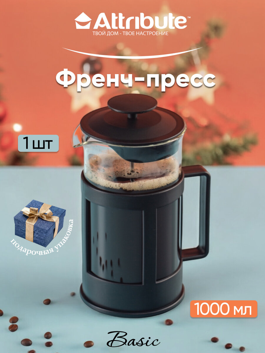 Френч-пресс для горячих напитков Attribute BASIC 1000 мл, с поршнем интересное: