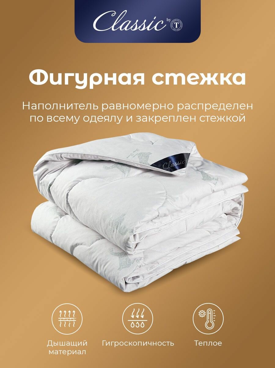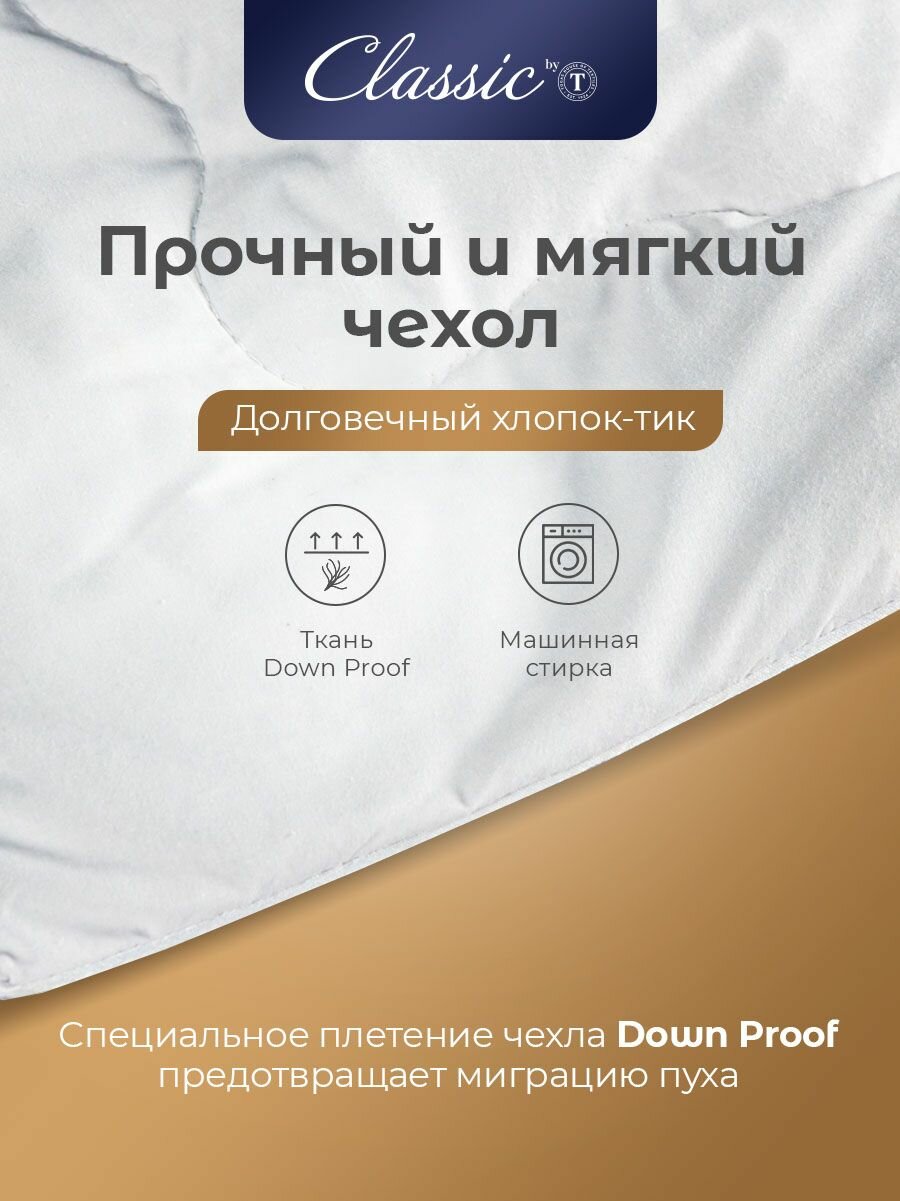 Classic by T Одеяло полуторное, зимнее "Синти" теплое 770 грамм, натуральный гусиный пух, микроволокно "Лебяжий пух", 140x205