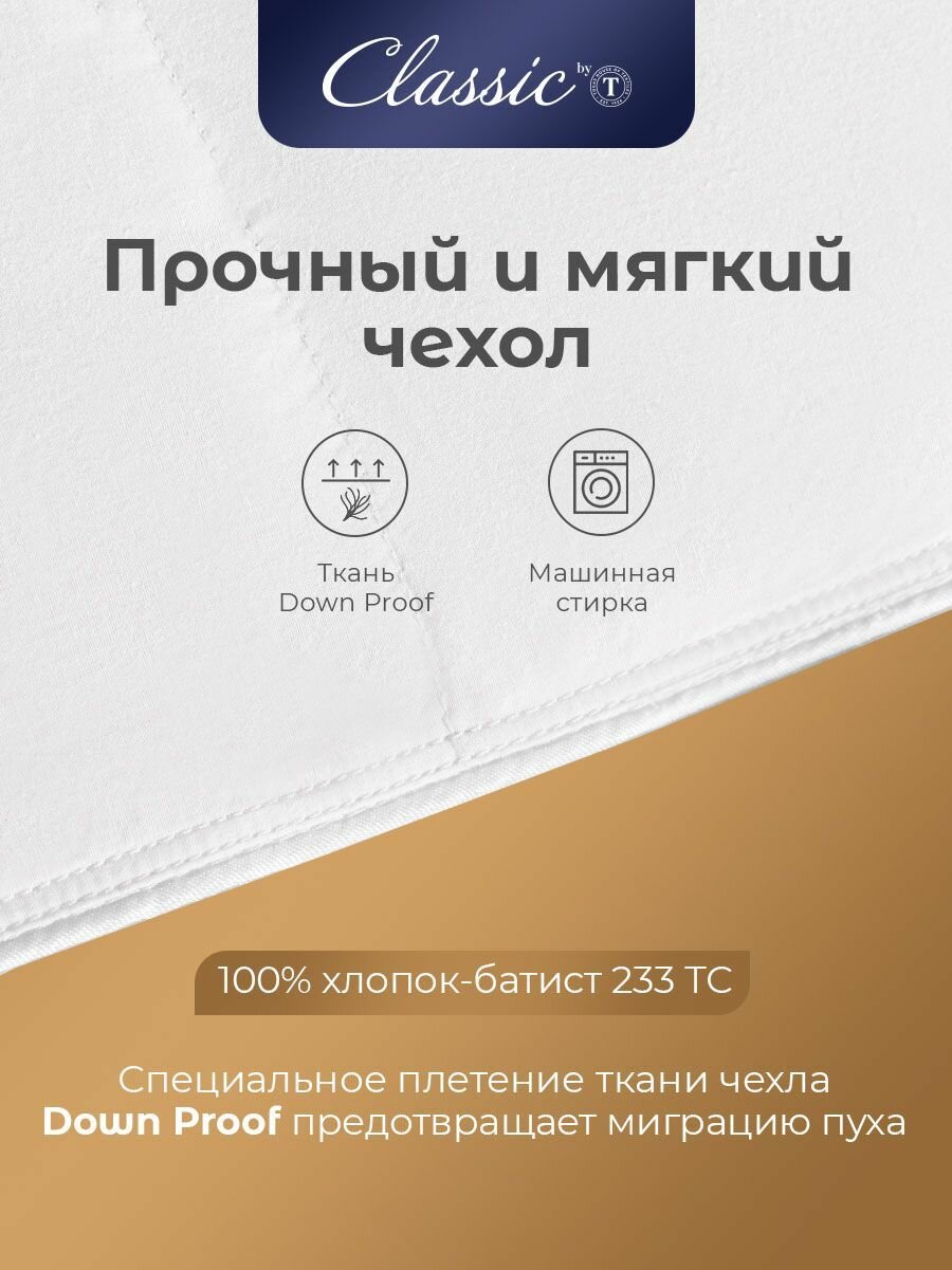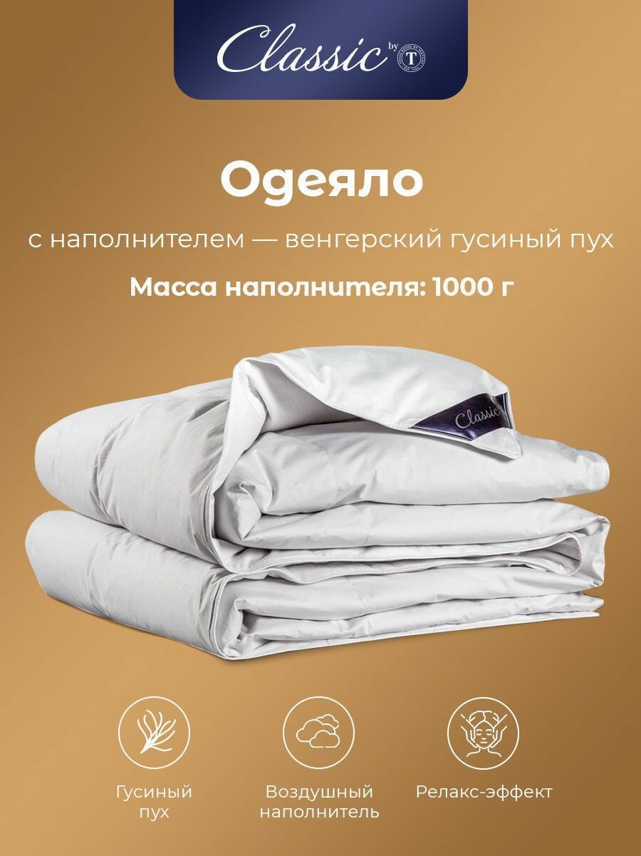 Classic by T Одеяло полуторное, зимнее "Синти" теплое 770 грамм, натуральный гусиный пух, микроволокно "Лебяжий пух", 140x205