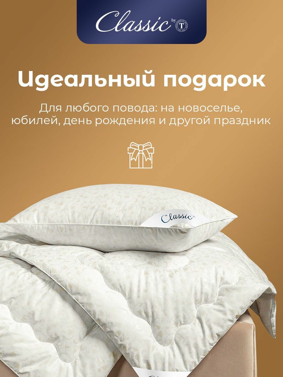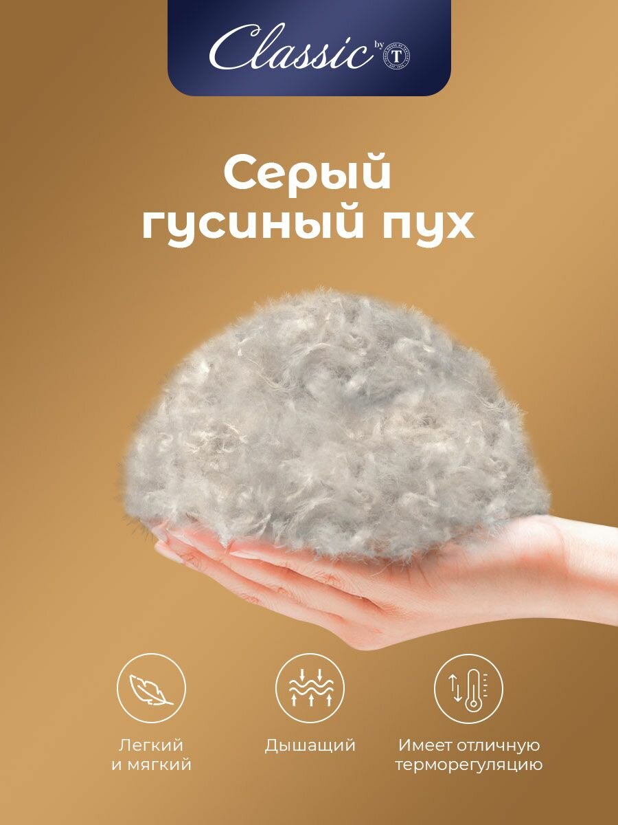 Classic by T Одеяло полуторное, зимнее "Синти" теплое 770 грамм, натуральный гусиный пух, микроволокно "Лебяжий пух", 140x205