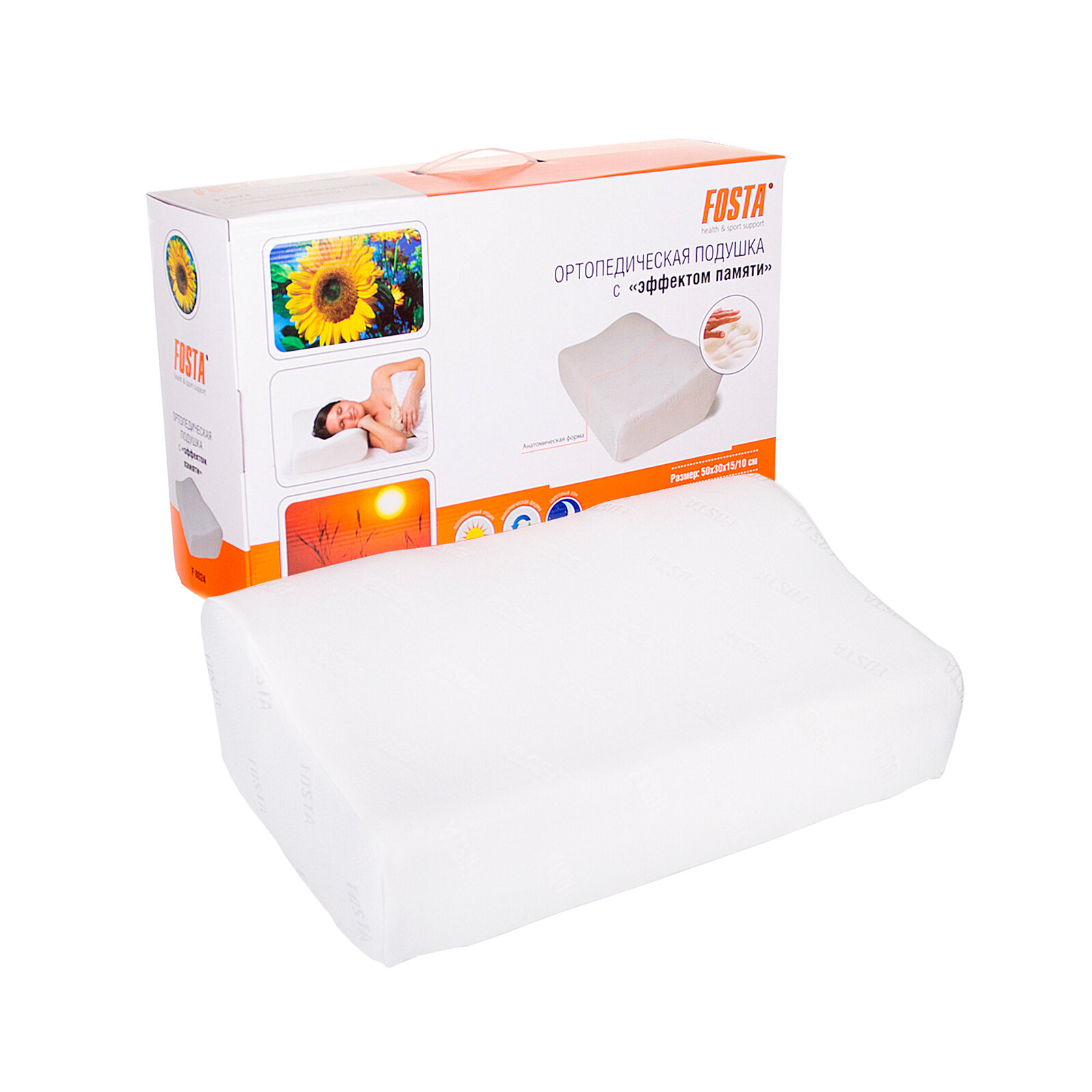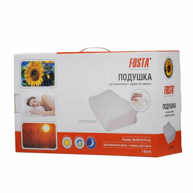 Подушка ортопедическая с эффектом памяти Fosta F 8024, 50х30 см, высота 10 и 15 см, выемка под плечо 50x30 см