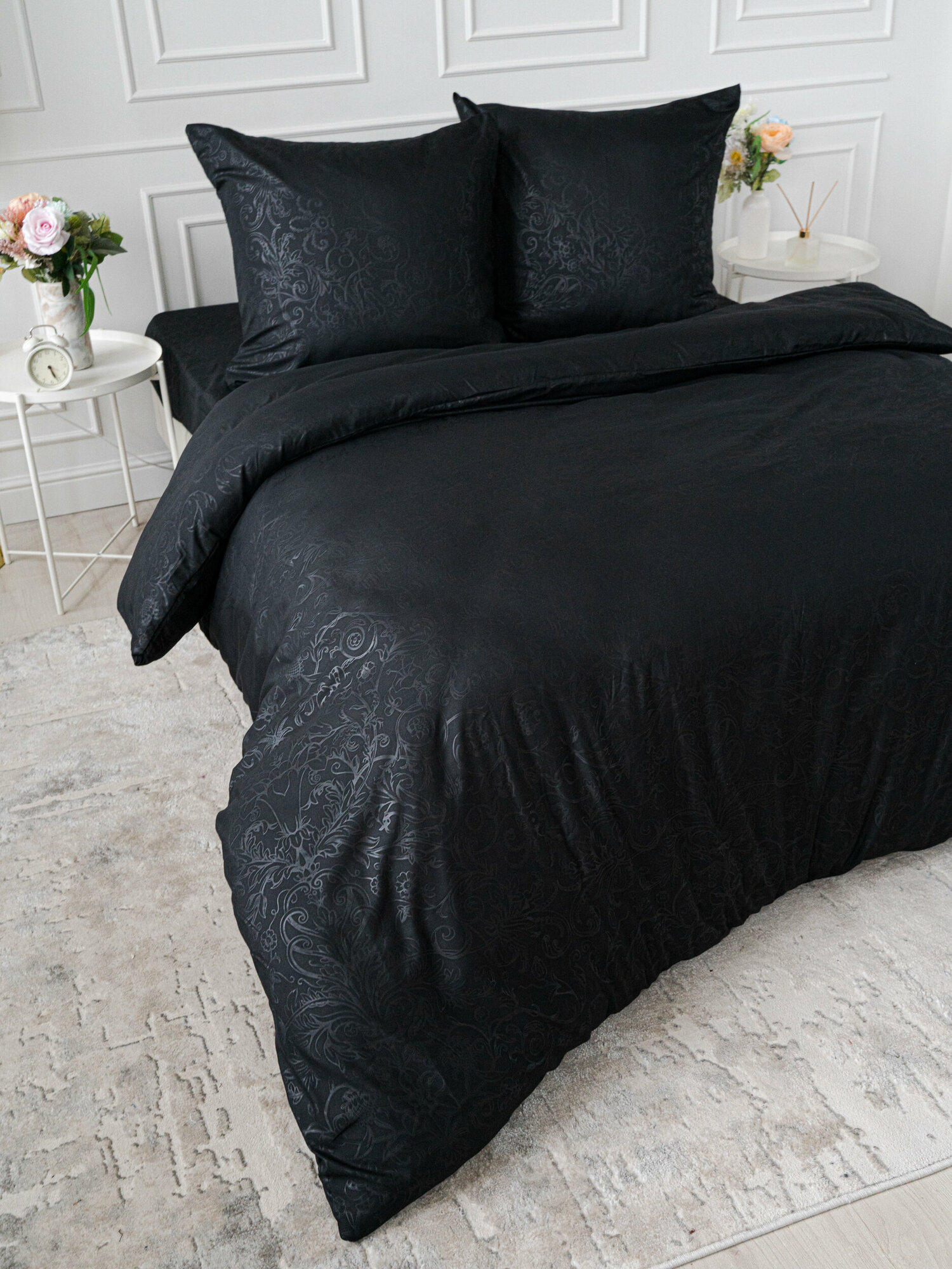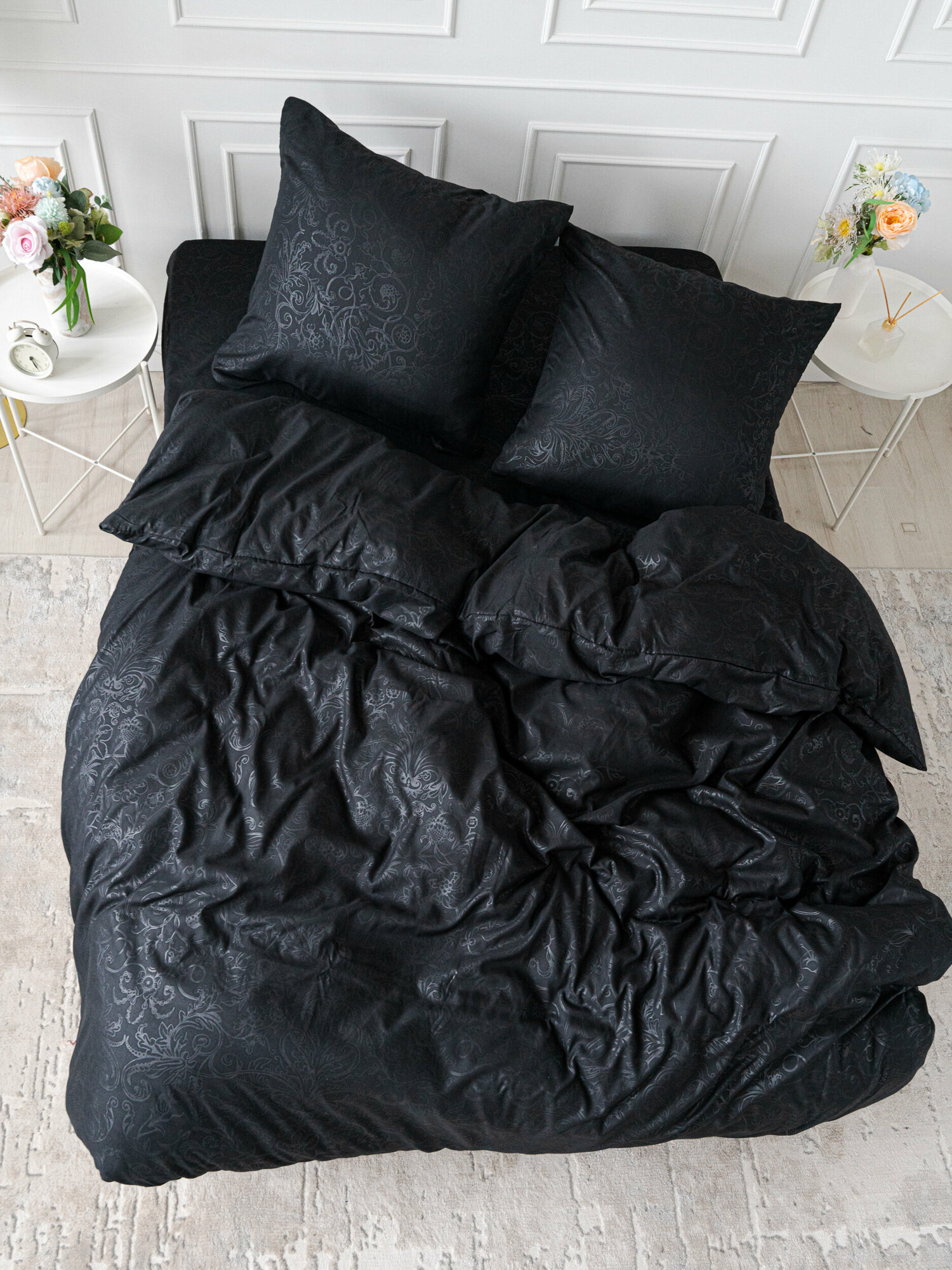Постельное белье 2 спальное с европростыней Павлина полисатин "Laura", графит