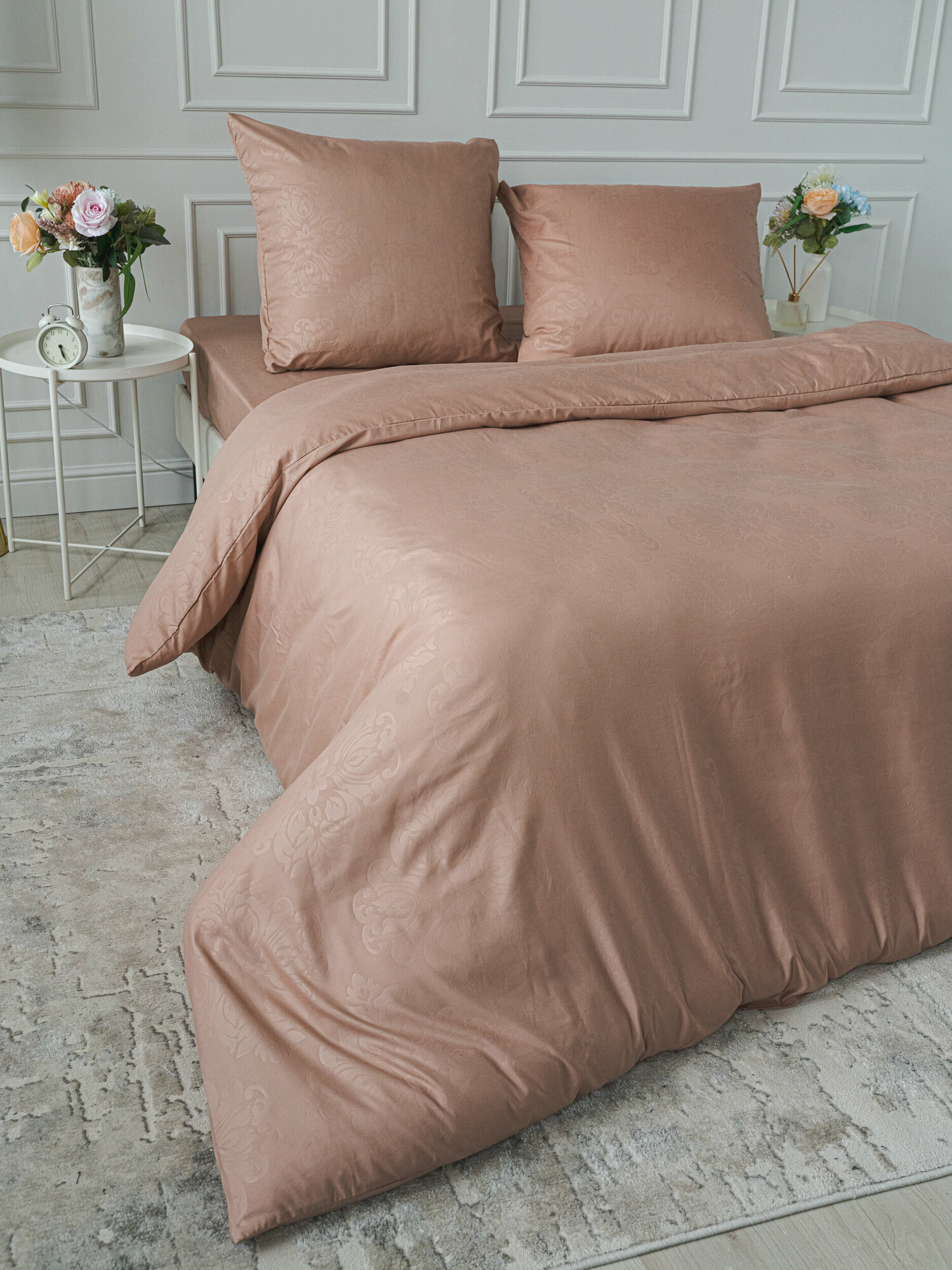 Постельное белье 1.5 спальное Павлина полисатин "Laura", бежевый