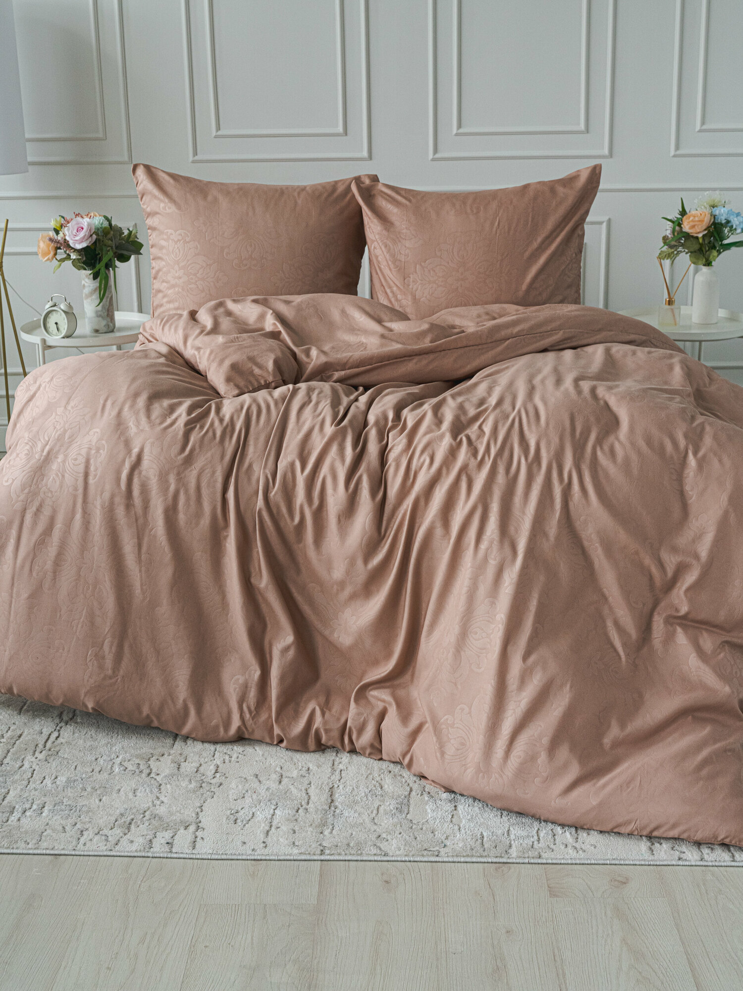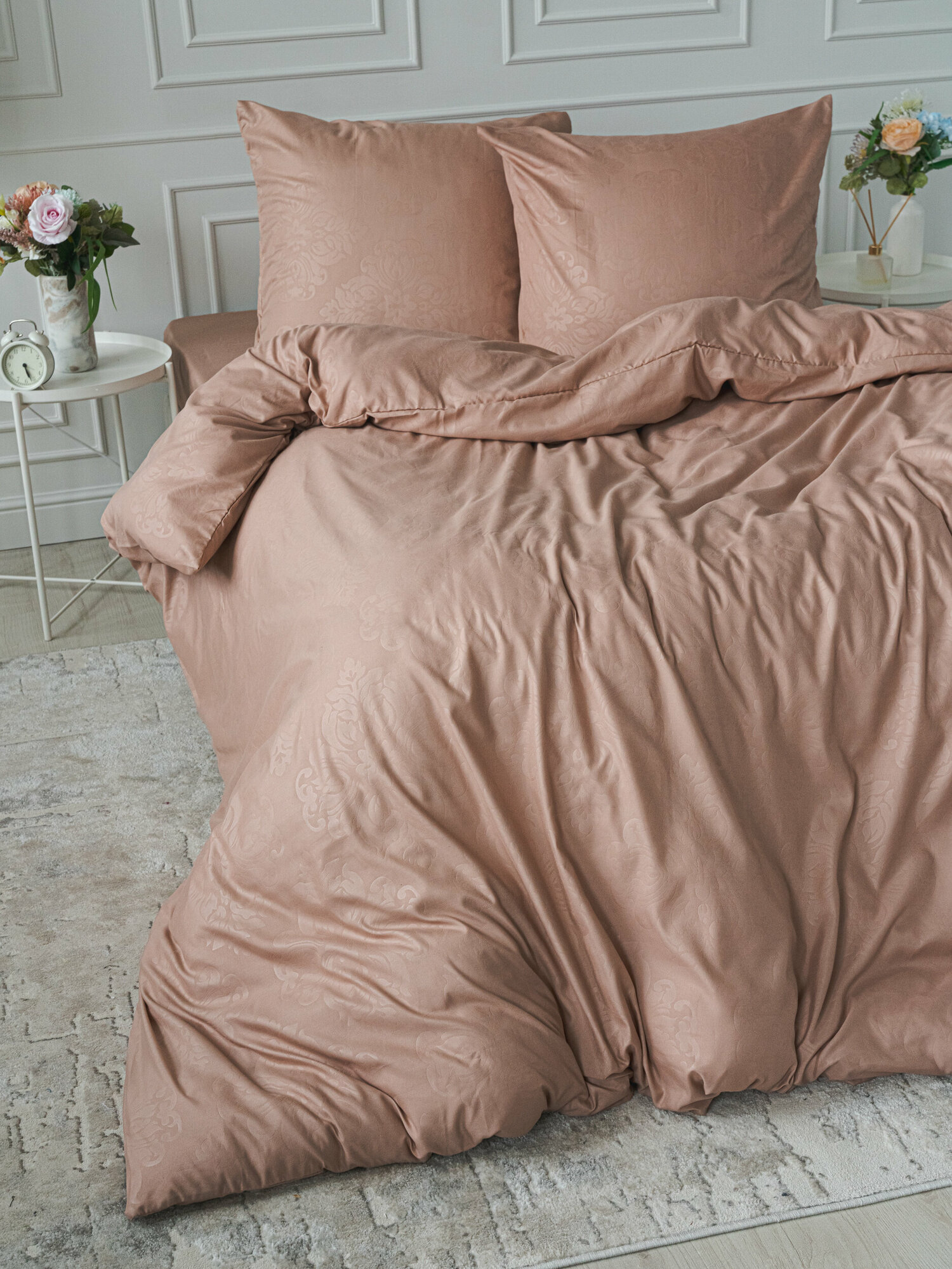 Постельное белье 2 спальное с европростыней Павлина полисатин "Laura", бежевый