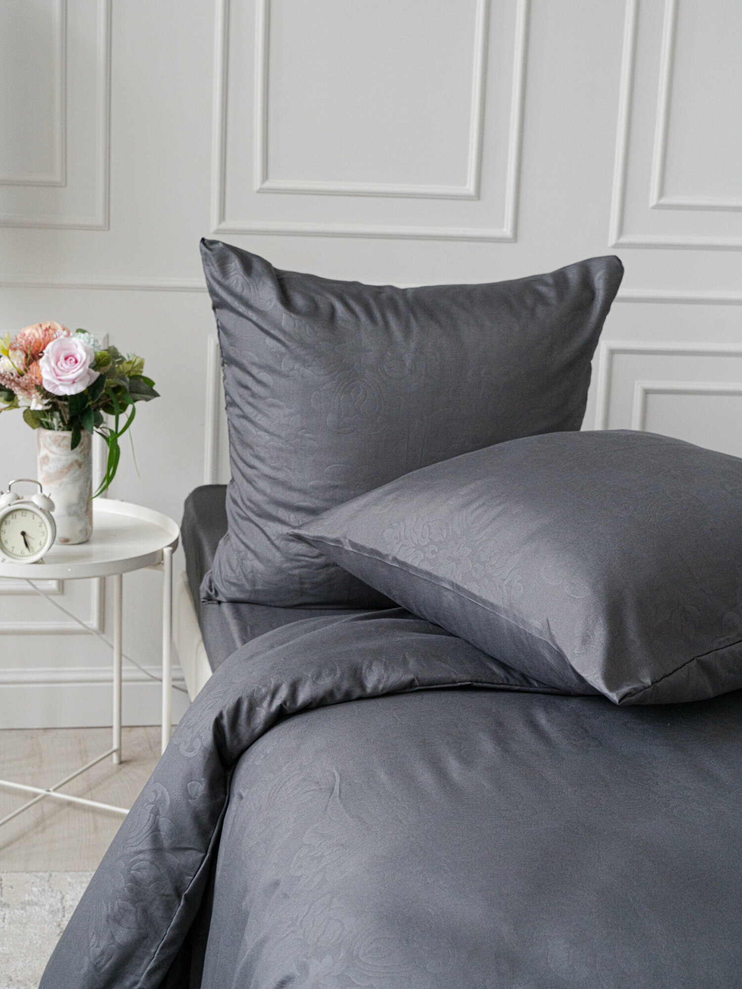Постельное белье 1.5 спальное Павлина полисатин "Laura", серый
