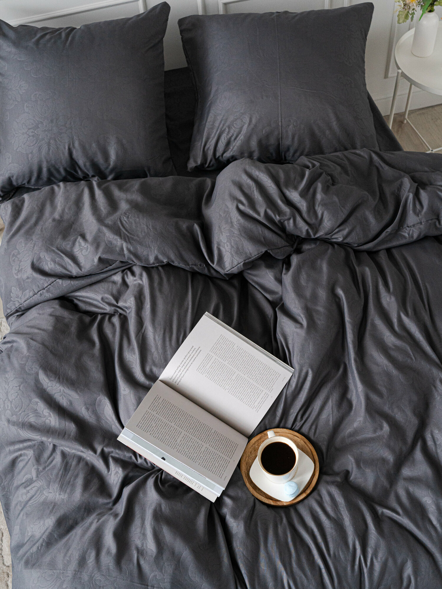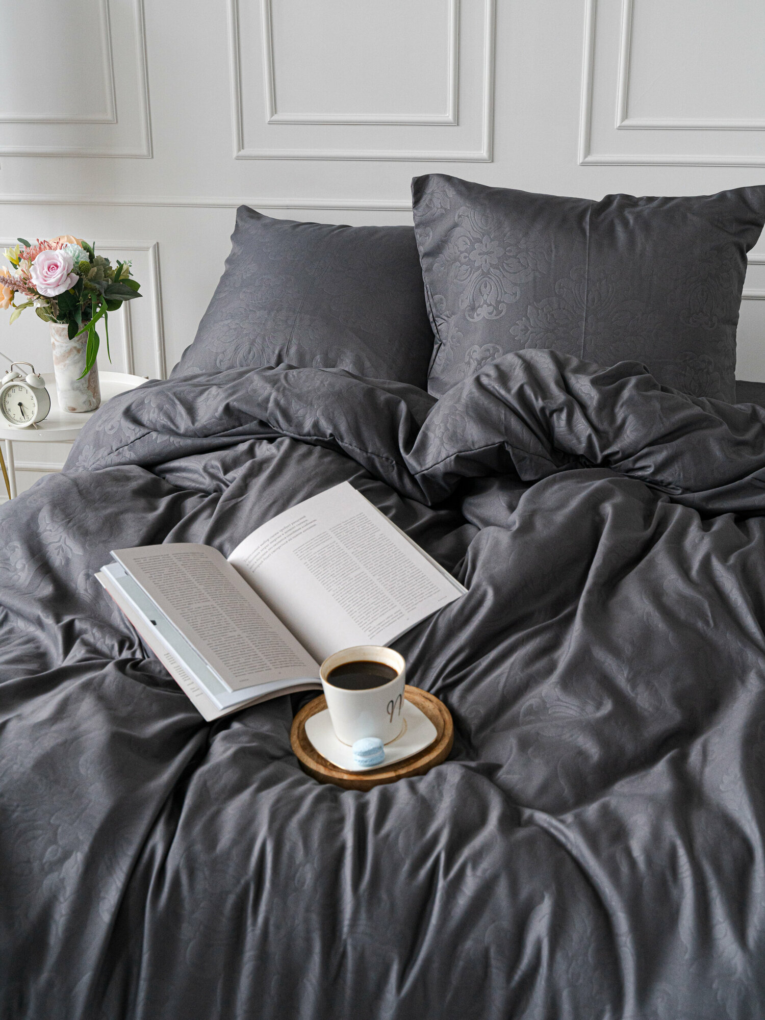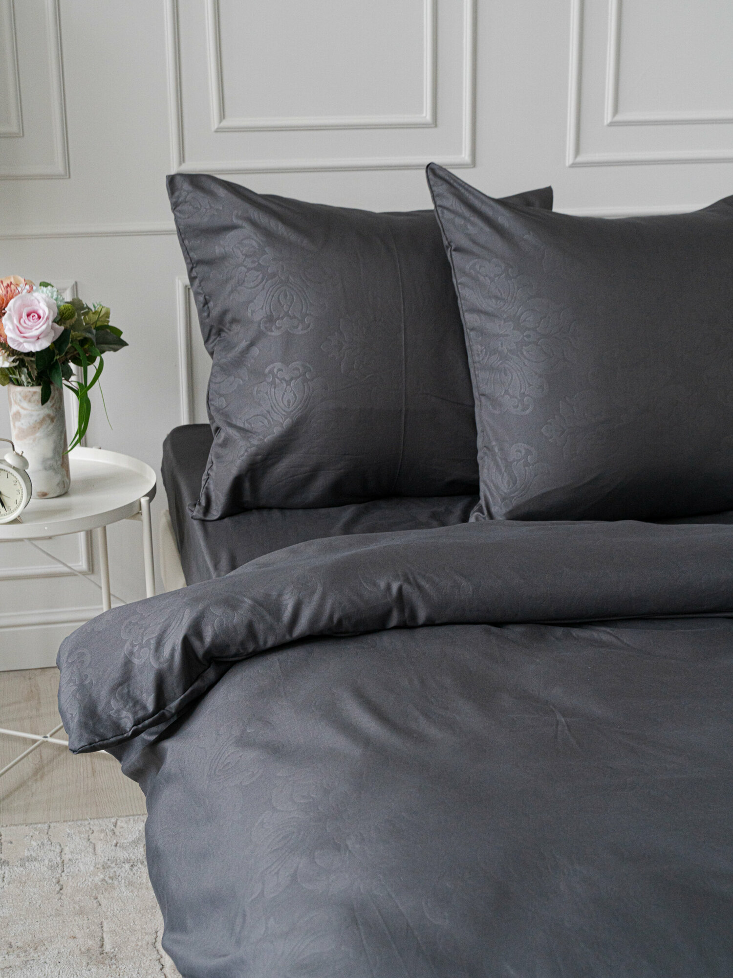 Постельное белье 1.5 спальное Павлина полисатин "Laura", графит