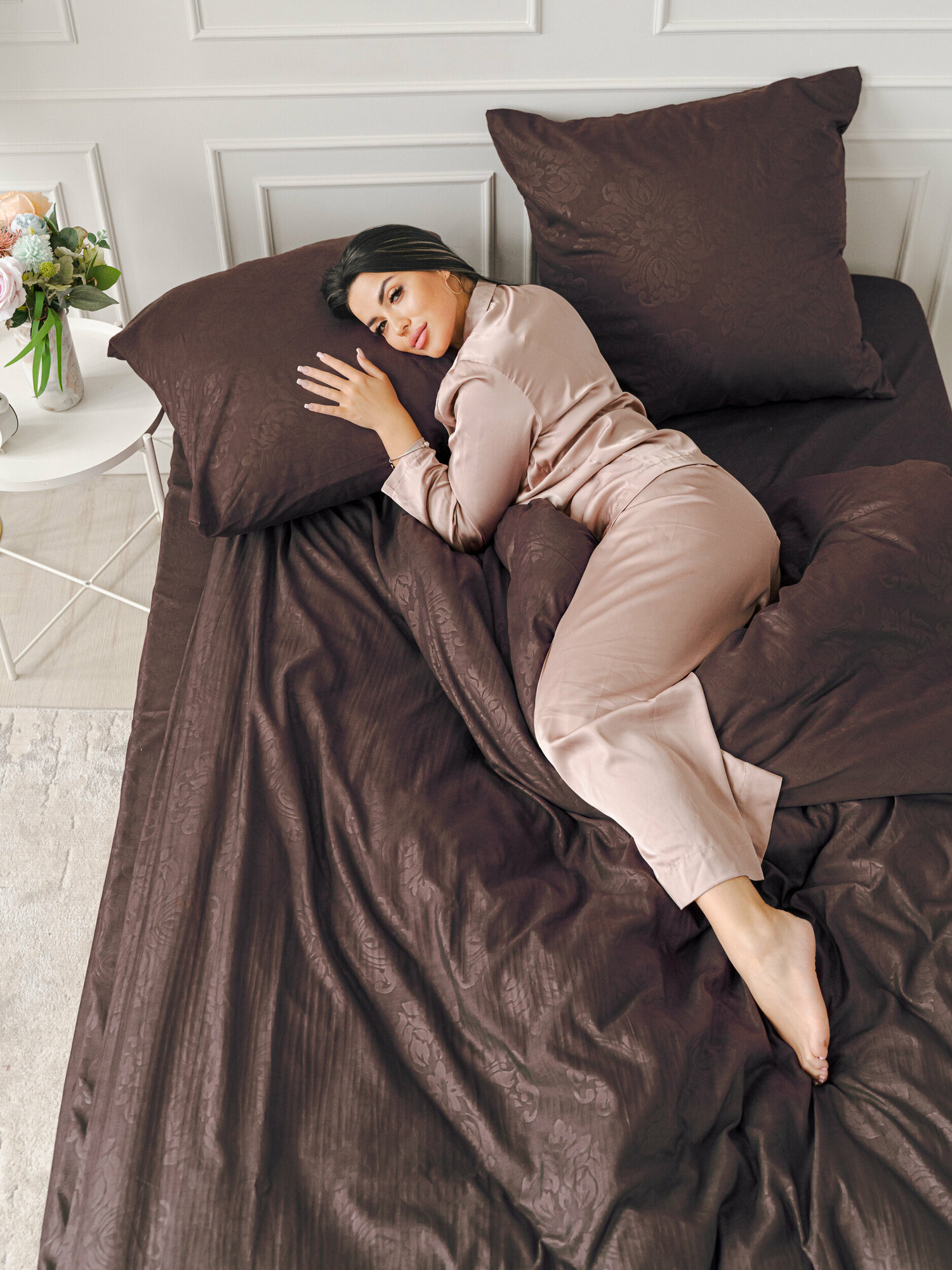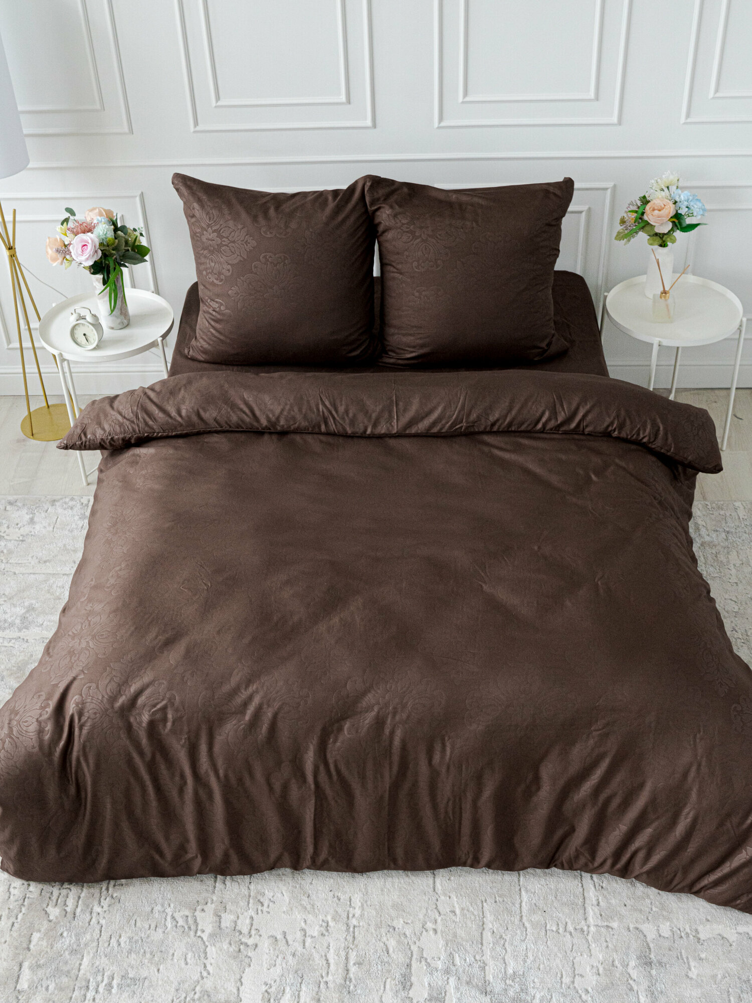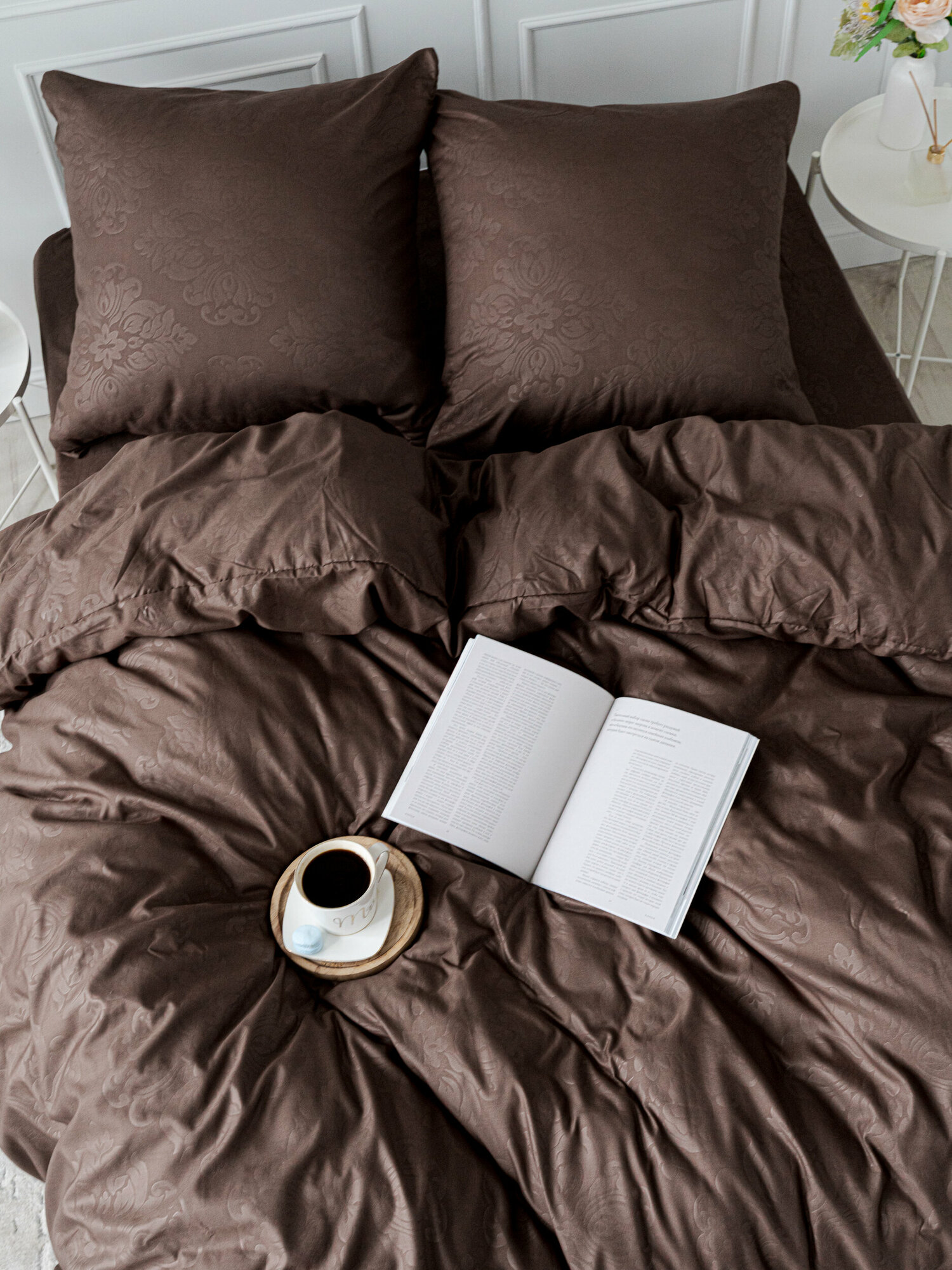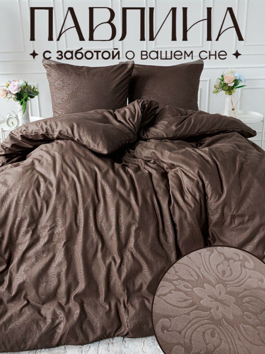 Постельное белье 2 спальное с европростыней Павлина полисатин "Laura", шоколад