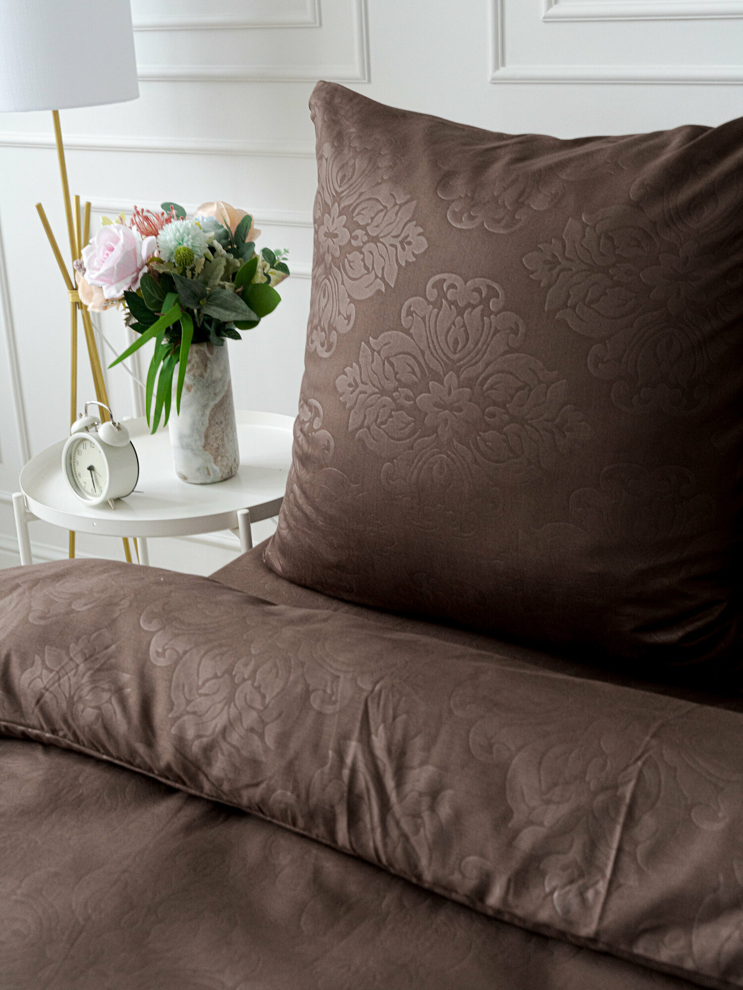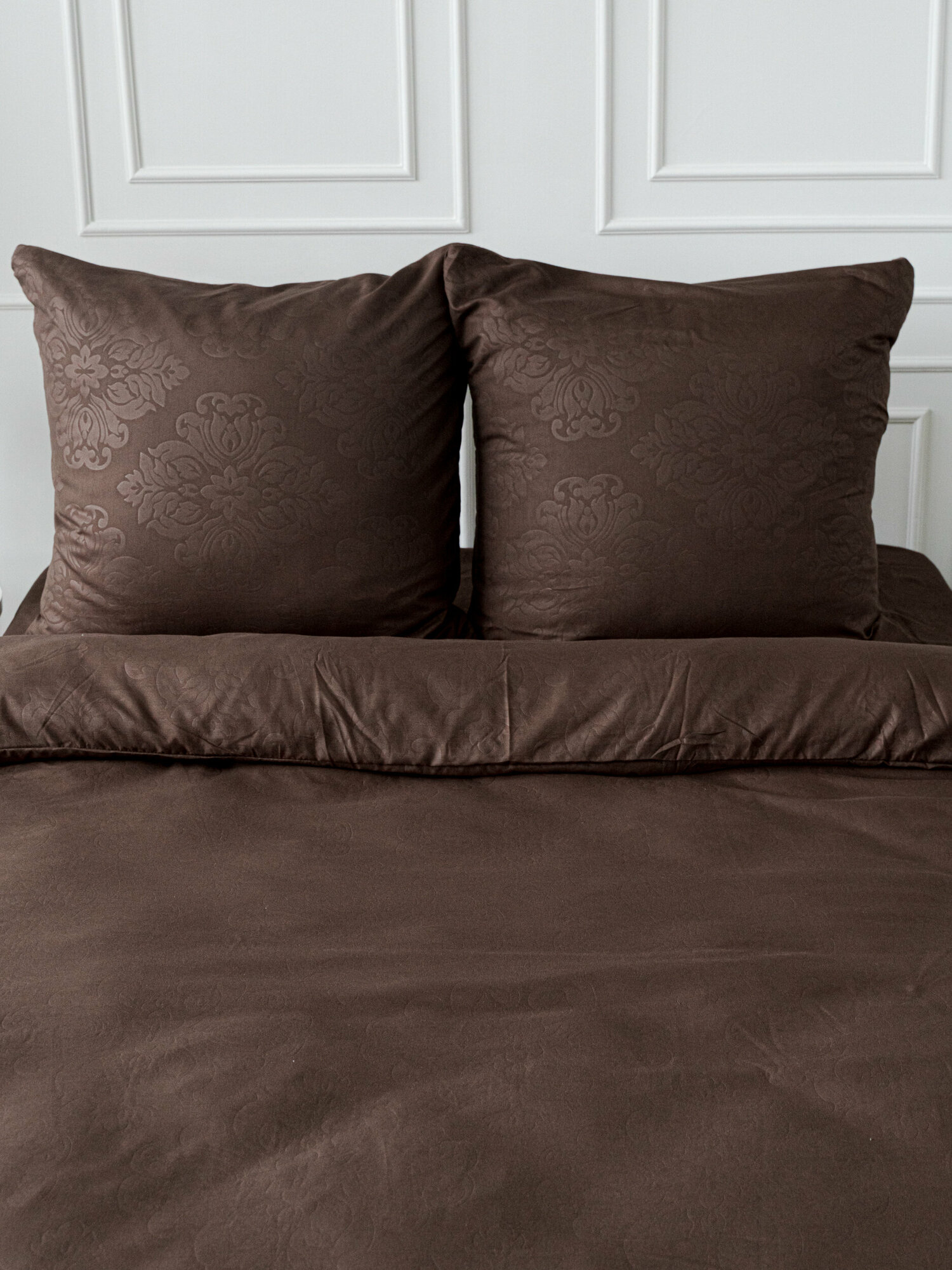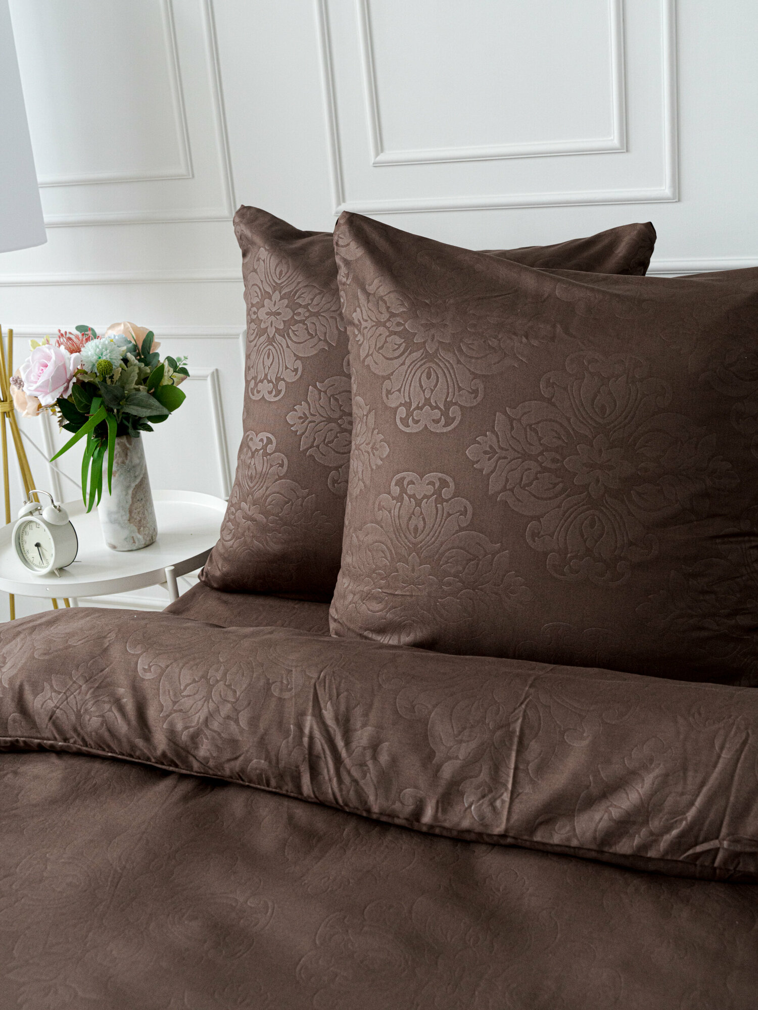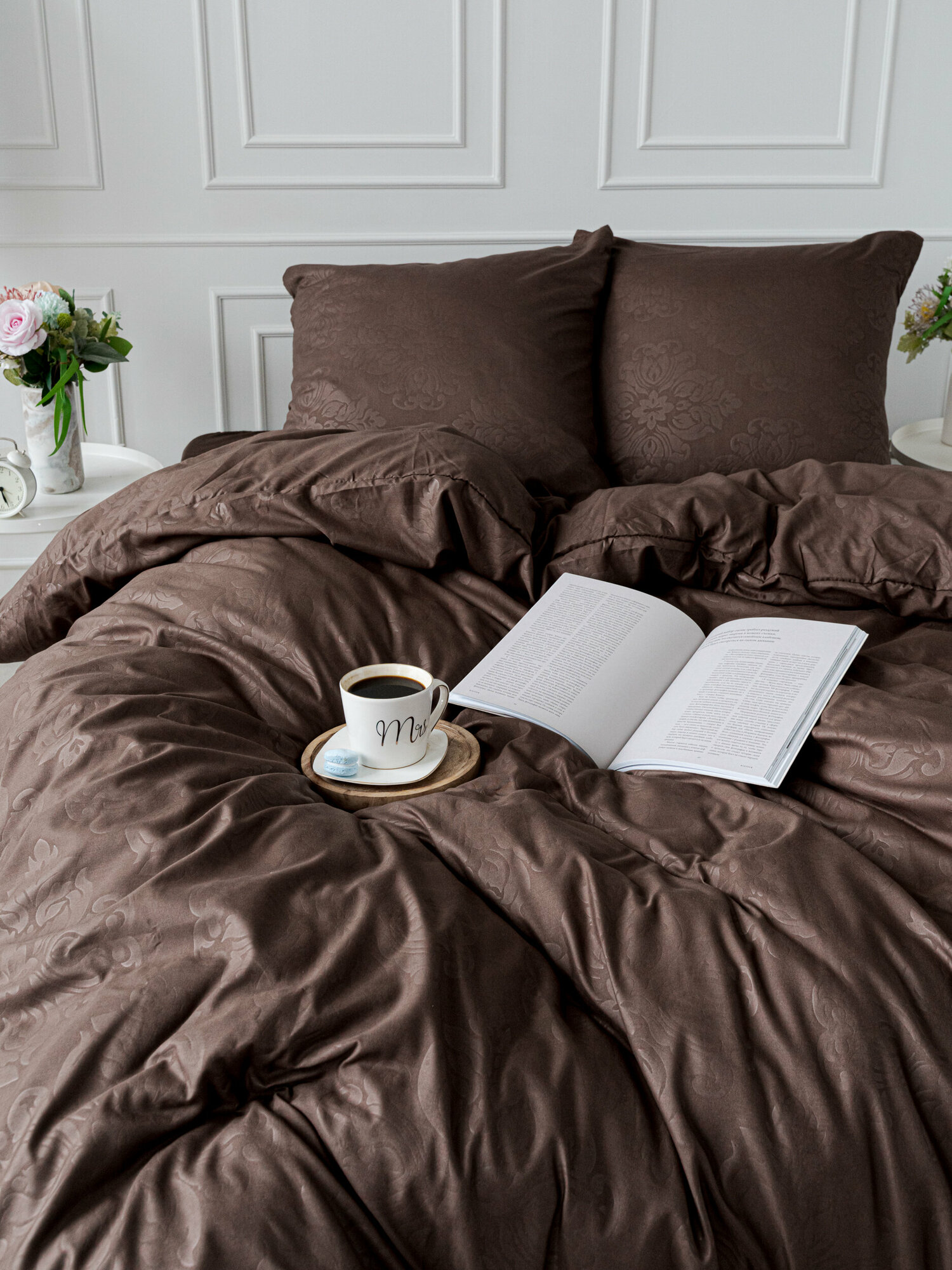 Постельное белье 2 спальное с европростыней Павлина полисатин "Laura", шоколад