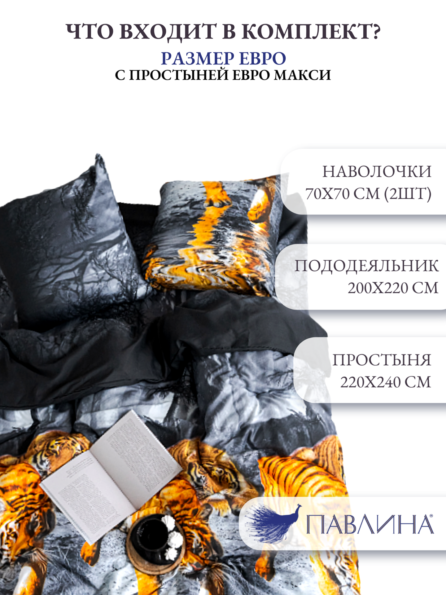 Постельное белье евро макси Павлина полисатин Тигры рис 3837, черный интересное: