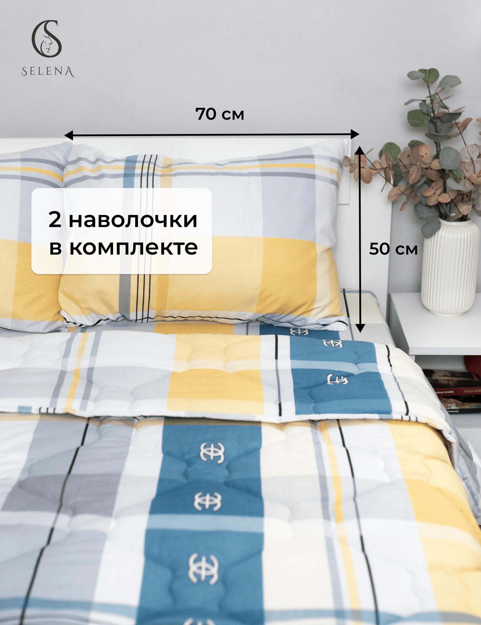 Комплект постельного белья с одеялом SELENA Кален евро из хлопка, полисатин, наволочка 2 шт