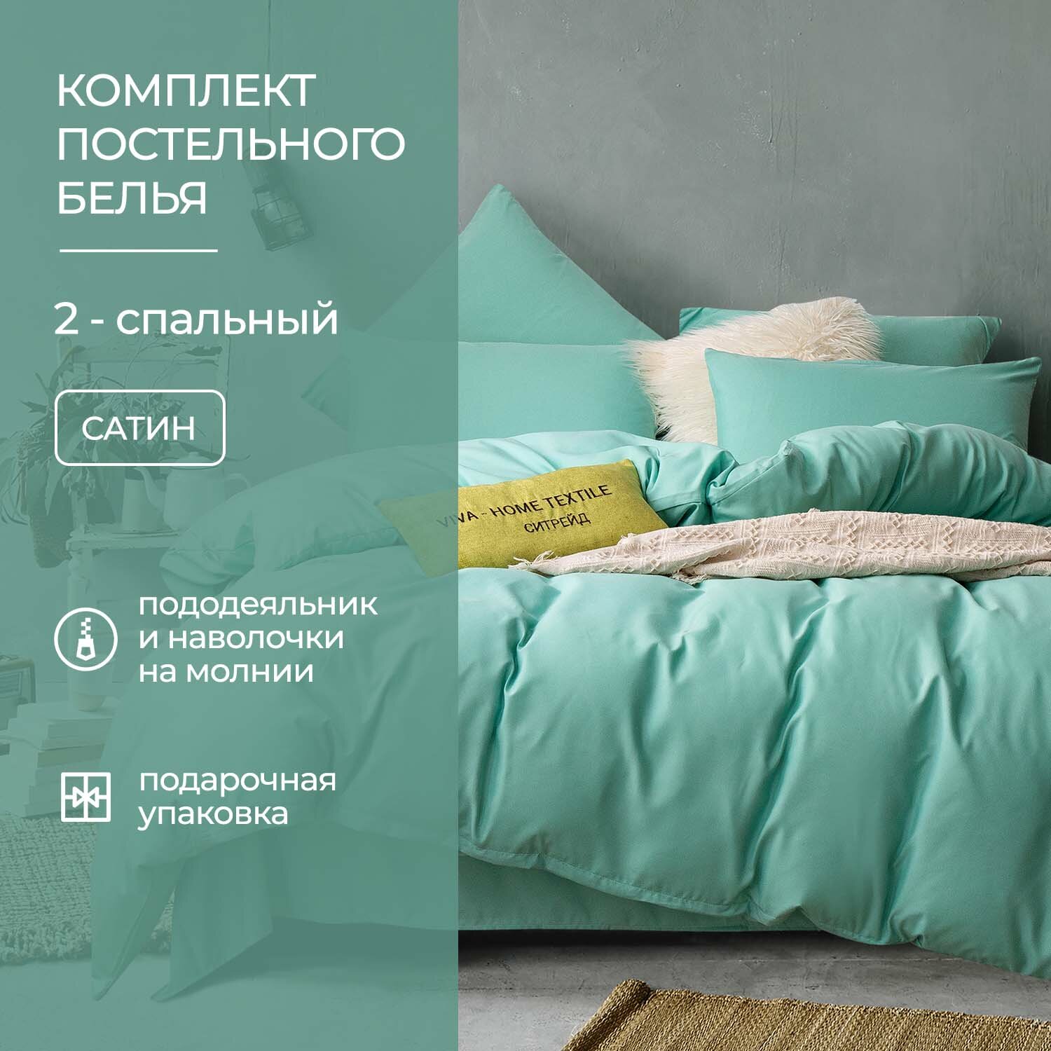 Комплект постельного белья ситрейд 2 спальный мятный, Сатин, наволочки 70x70 2 шт.
