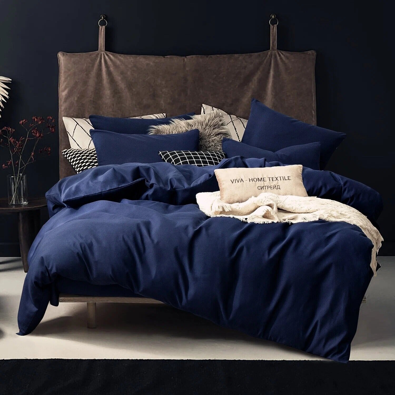 Комплект постельного белья ситрейд 1,5 спальный синий, Сатин, наволочки 70x70 2 шт.