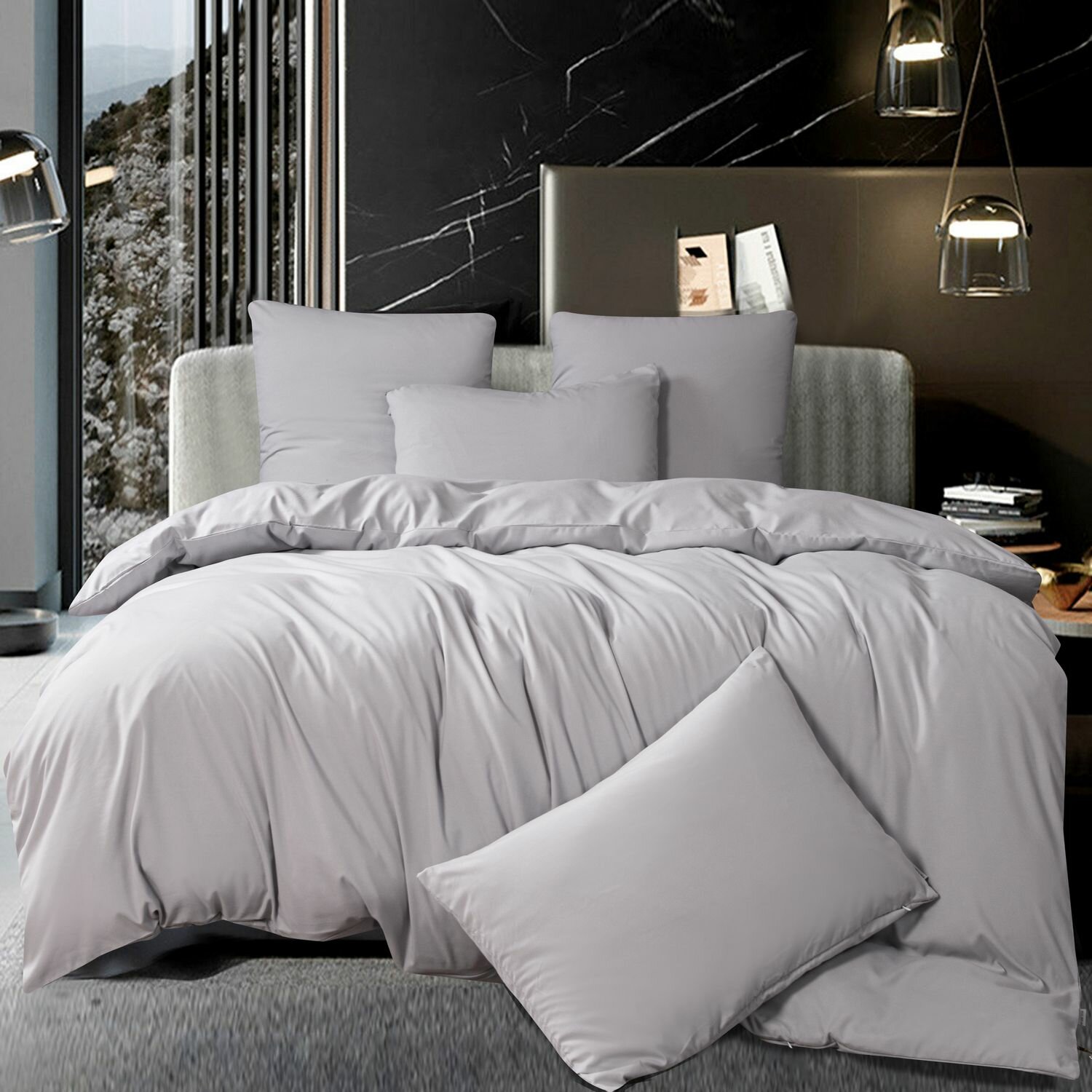 Комплект постельного белья ситрейд Евро однотонный светло-серый, Сатин, наволочки 50x70, 70x70 по 2 шт.
