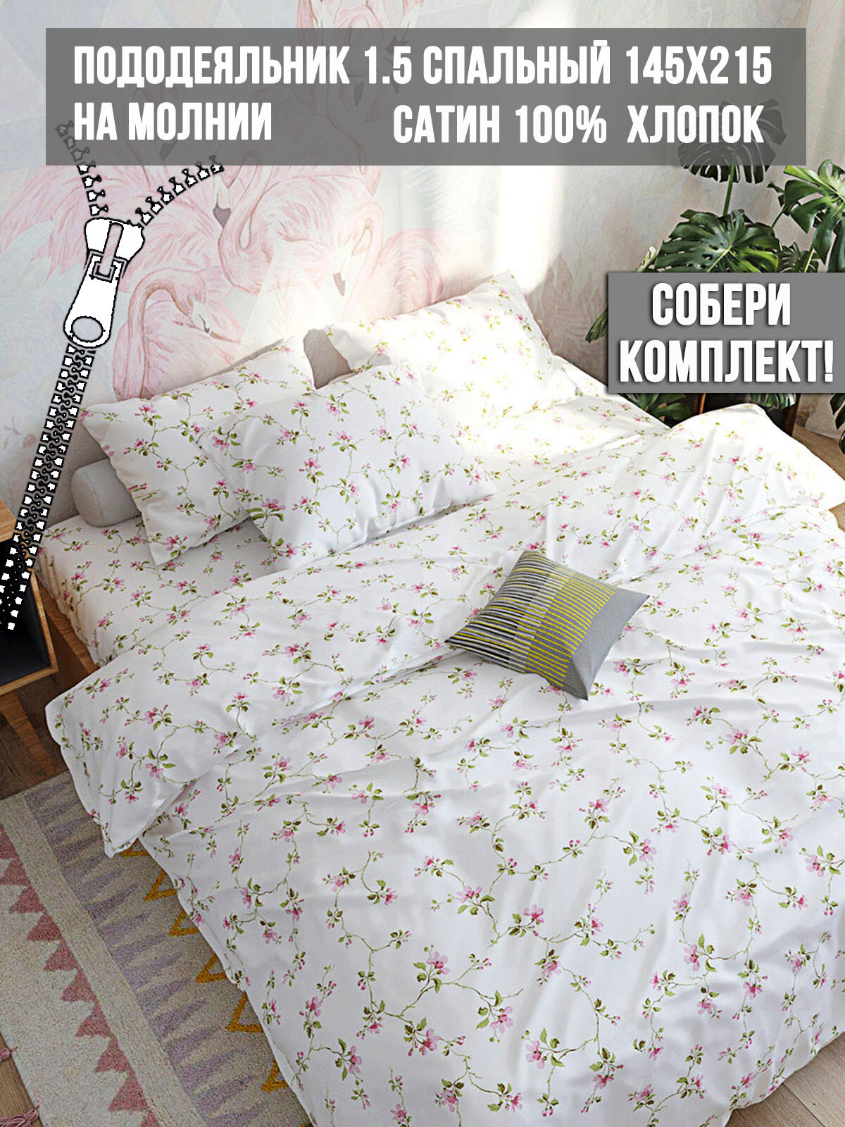 СохранитьПододеяльник MilkyGarden "Весна" 175х215 см 2-спальный, на молнии, сатин, хлопок 100% интересное: