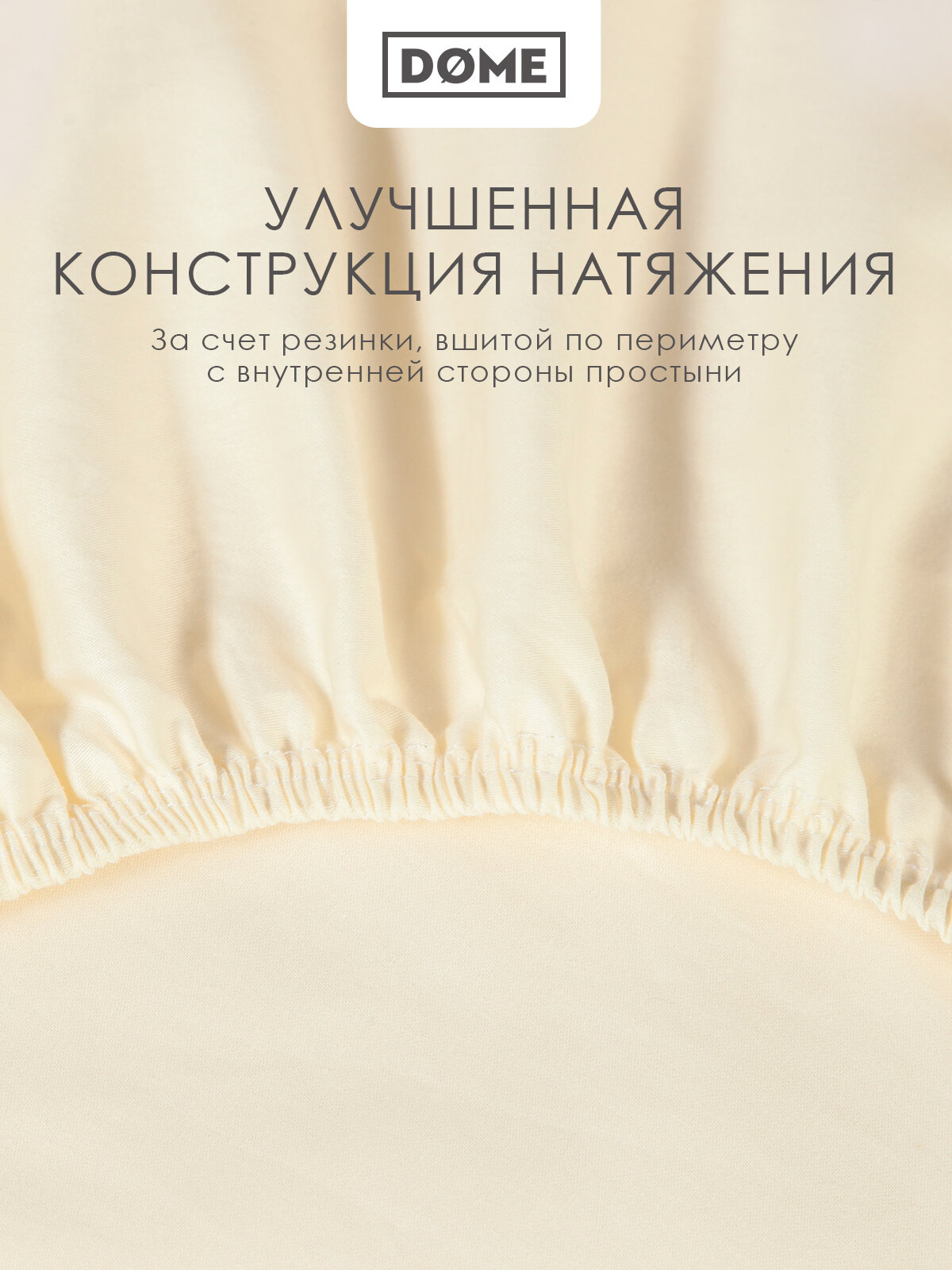 Купить DOME Простыня на резинке полуторная "Лорено" сатин, хлопок, 120x200 +25, бежевая