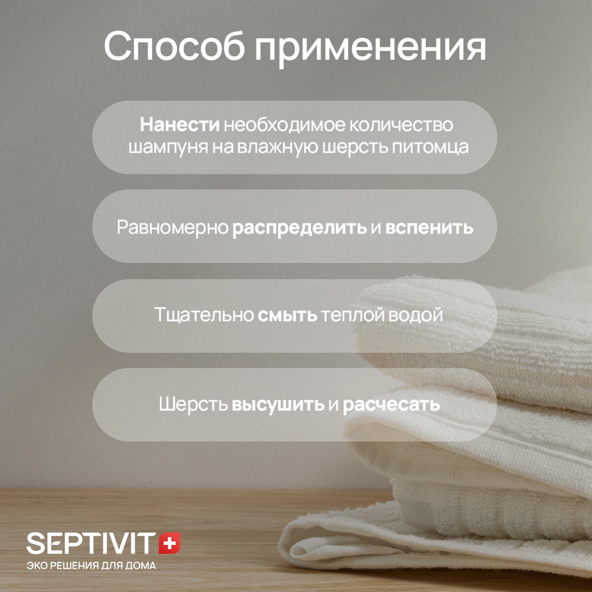 | Назначение | от запаха / против перхоти / уход за кожей / уход за лапами / уход за шерстью |