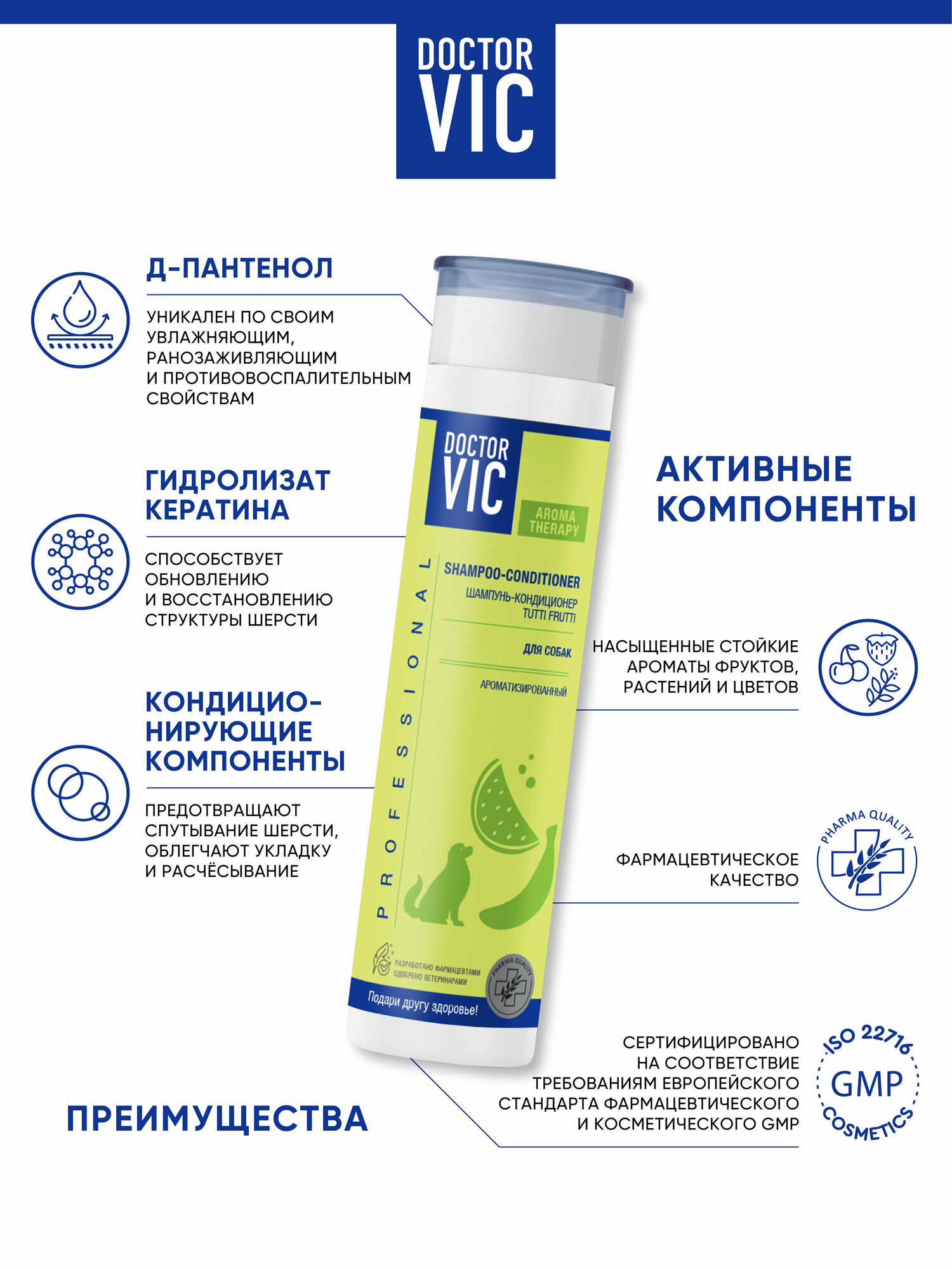Купить Шампунь-кондиционер Doctor VIC "TUTTI FRUTTI" для собак всех пород, флакон 250 мл.