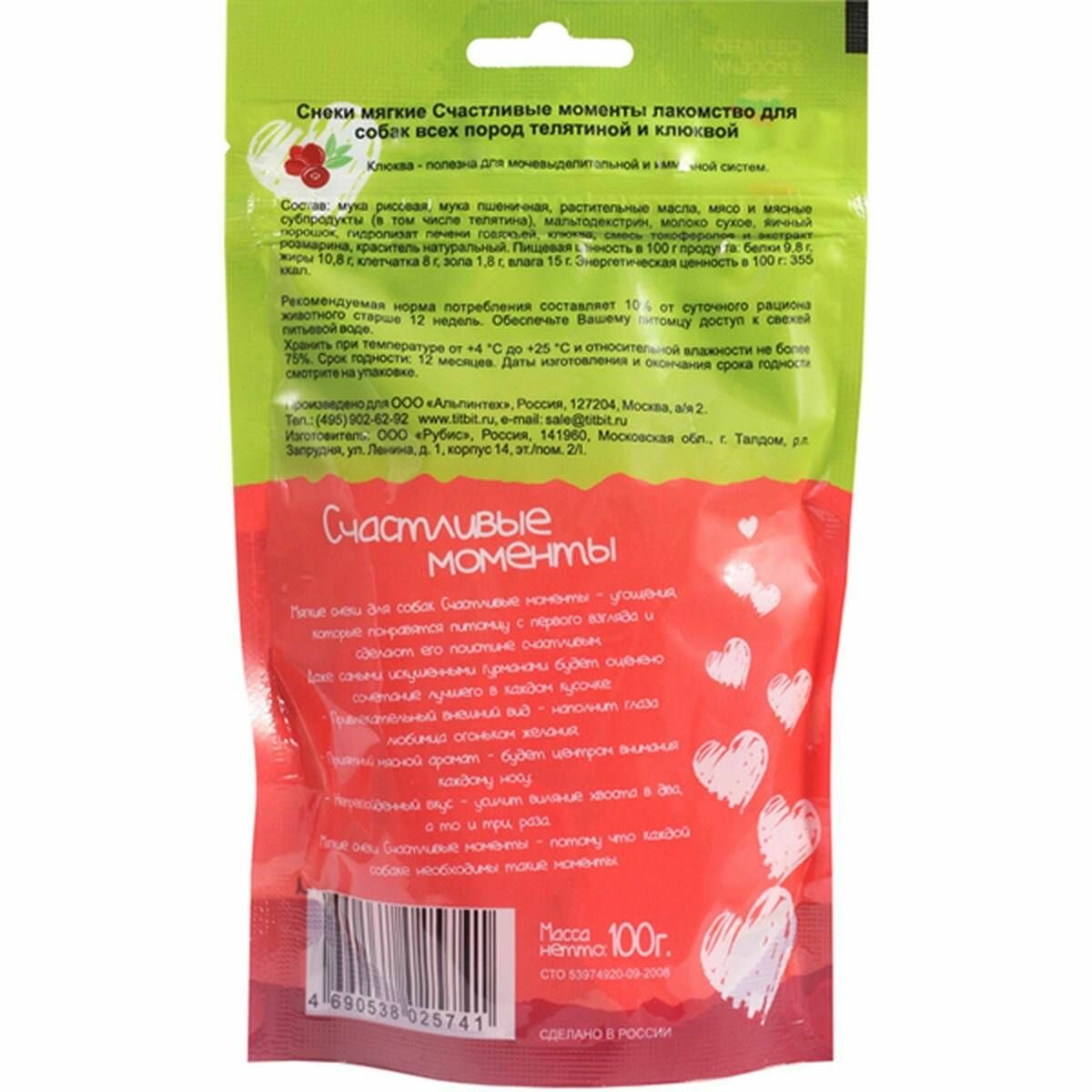 TiTBiT Снеки мягкие Счастливые моменты для собак всех пород с телятиной и клюквой 25741 0,100 кг 65315 (1 шт) интересное: