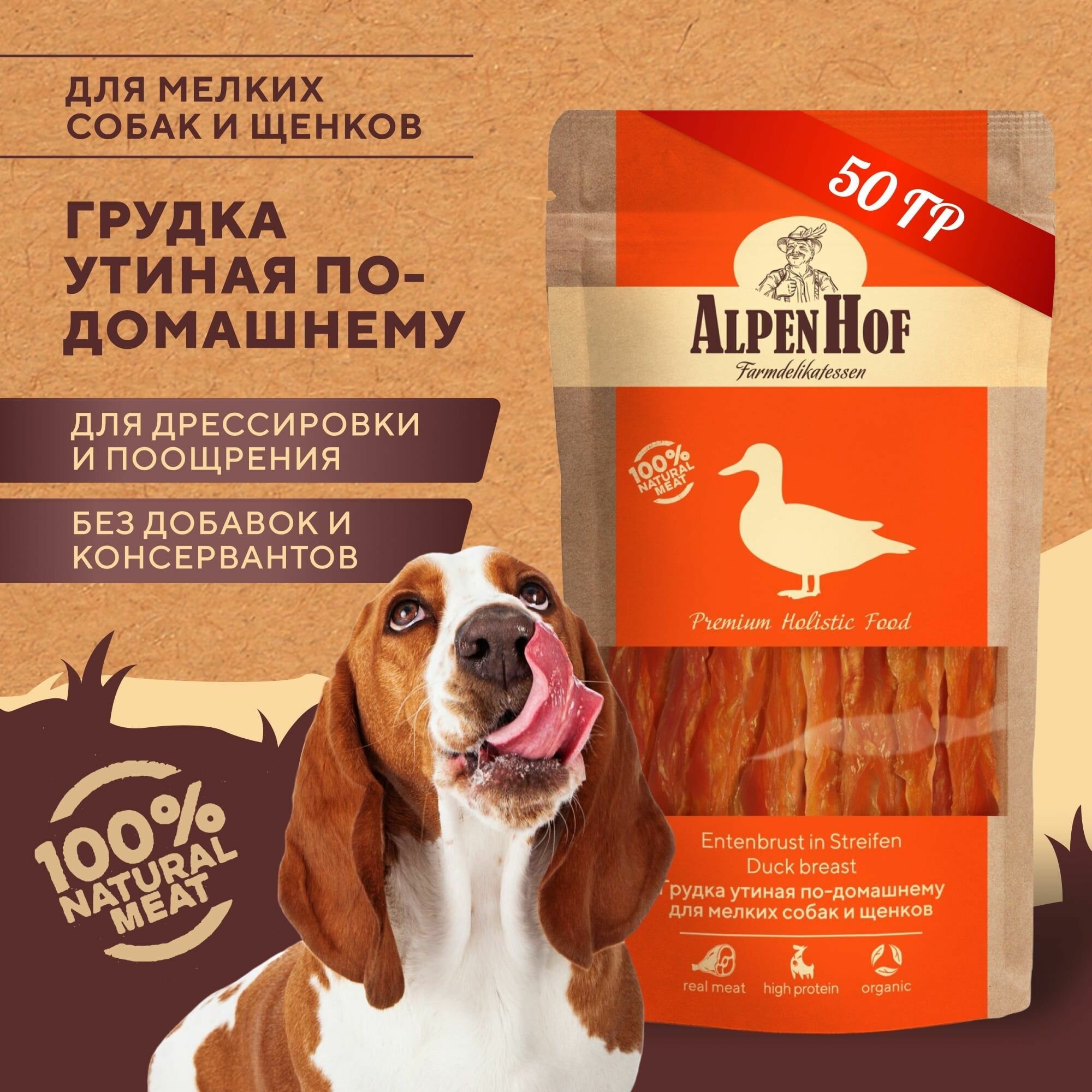 Купить AlpenHof лакомство для собак Грудка утиная по-домашнему для мелких собак и щенков АльпенХоф, 50 г