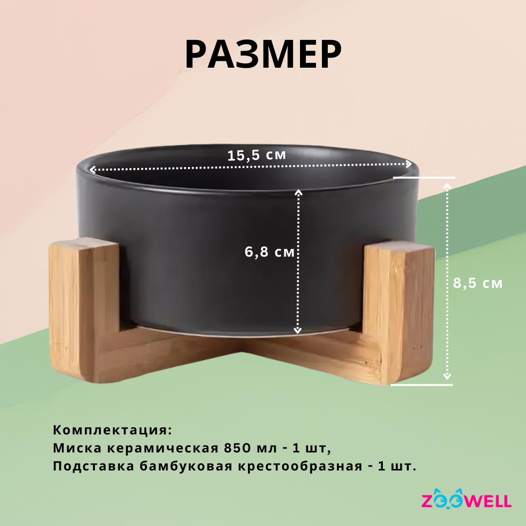 Миска Zoowell Aura 850 мл, керамическая, одинарная, для корма и воды, на подставке, для животных, черный (ZWbowl12)