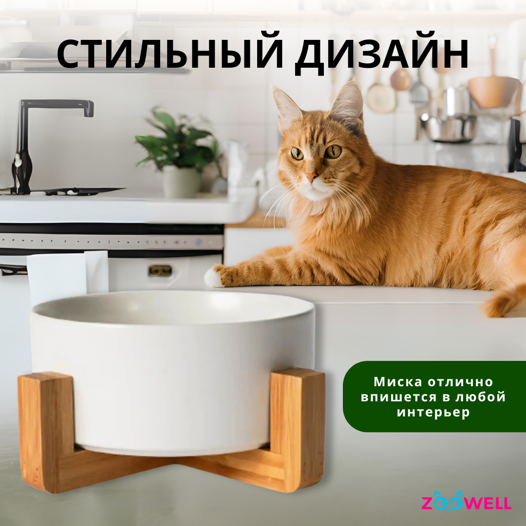 СохранитьМиска керамическая для животных ZooWell Aura на подставке, белый, 850мл интересное: