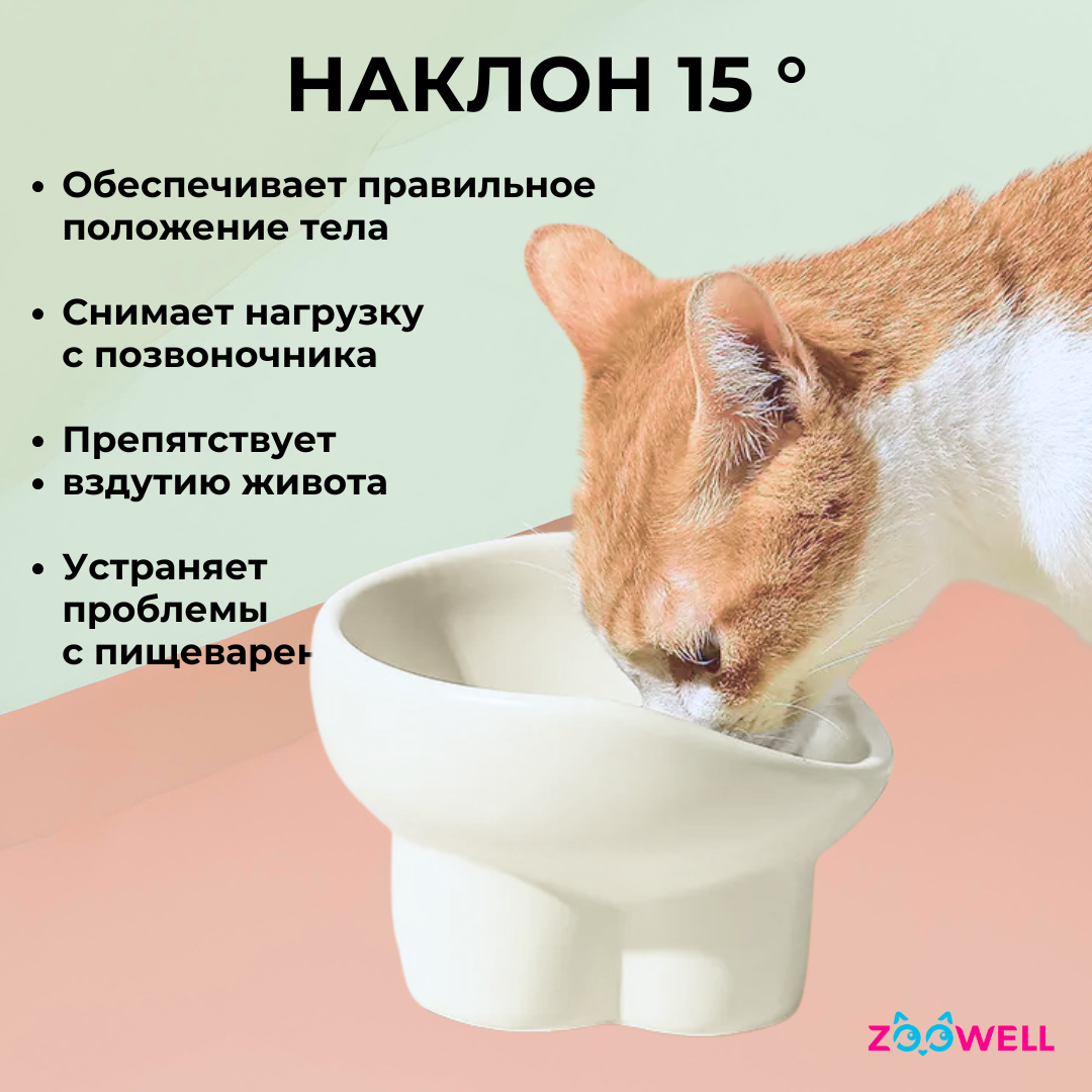 Миска для животных ZooWell Aura с наклоном, 240 мл, цвет бежевый, керамика