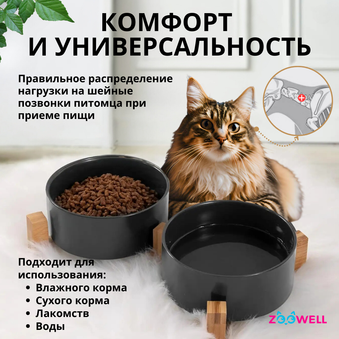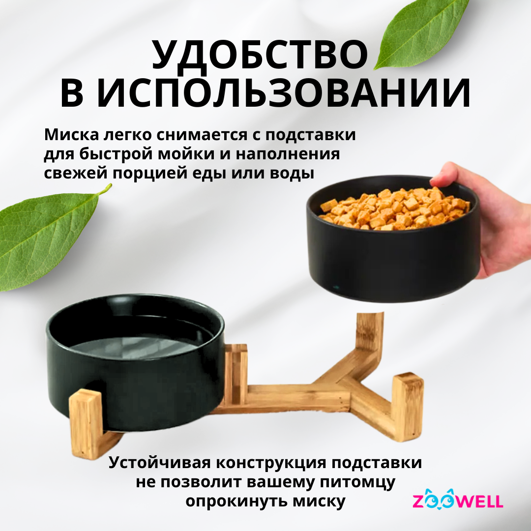 Миска Zoowell Aura 850 мл, керамическая, одинарная, для корма и воды, на подставке, для животных, черный (ZWbowl12)