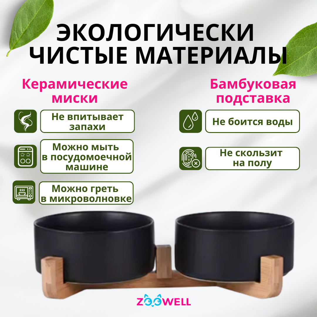 СохранитьНабор мисок для животных ZooWell Aura на деревянной подставке, цвет черный, 2 шт по 850мл интересное: