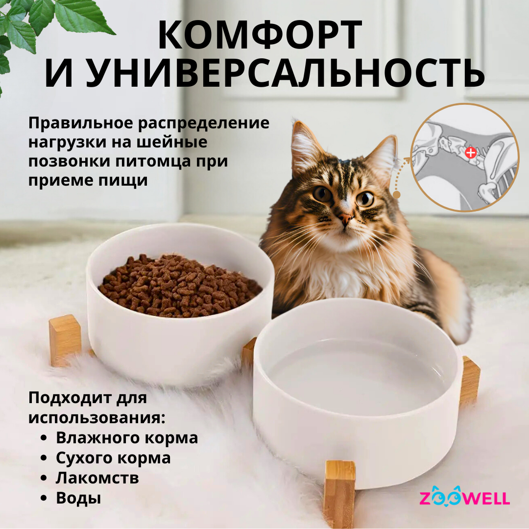 Купить Набор мисок для животных ZooWell Aura на деревянной подставке, цвет белый, 2 шт по 850мл