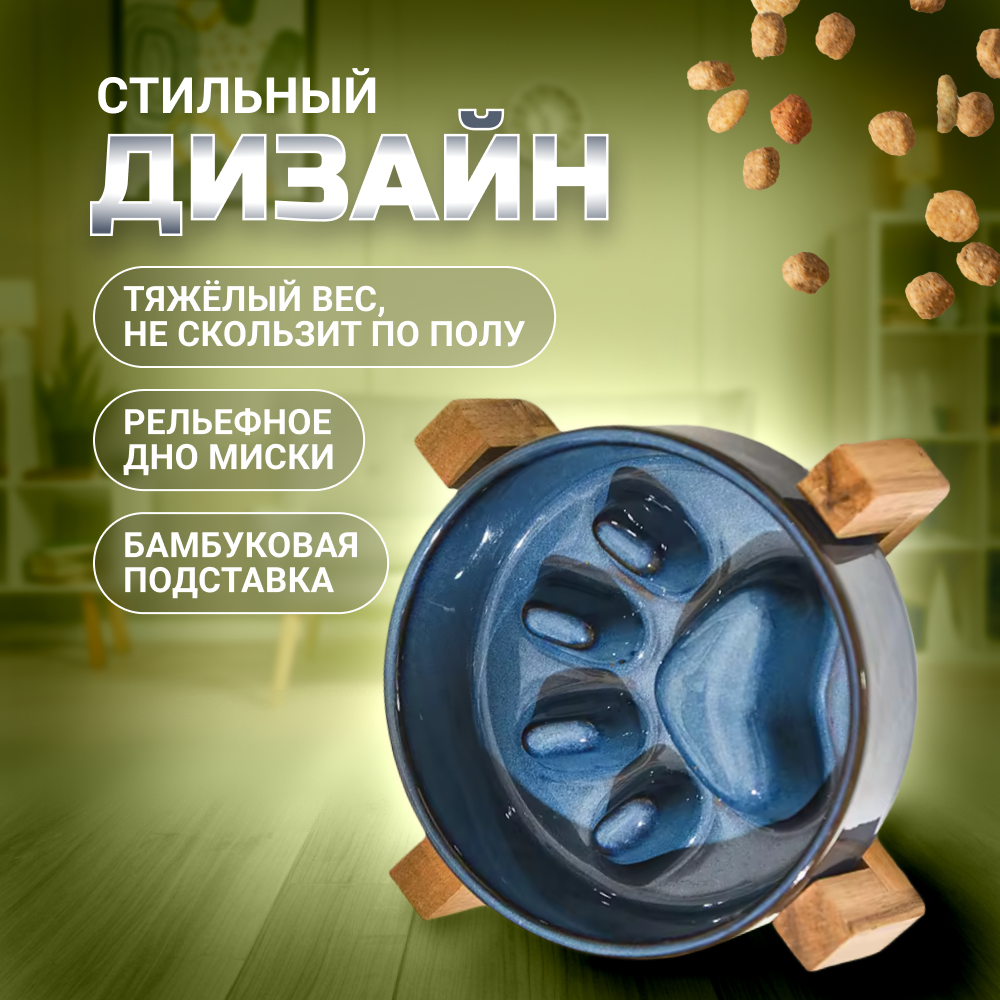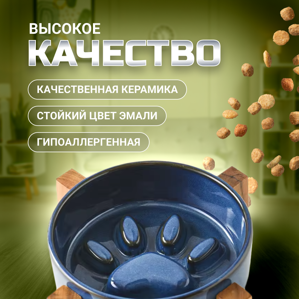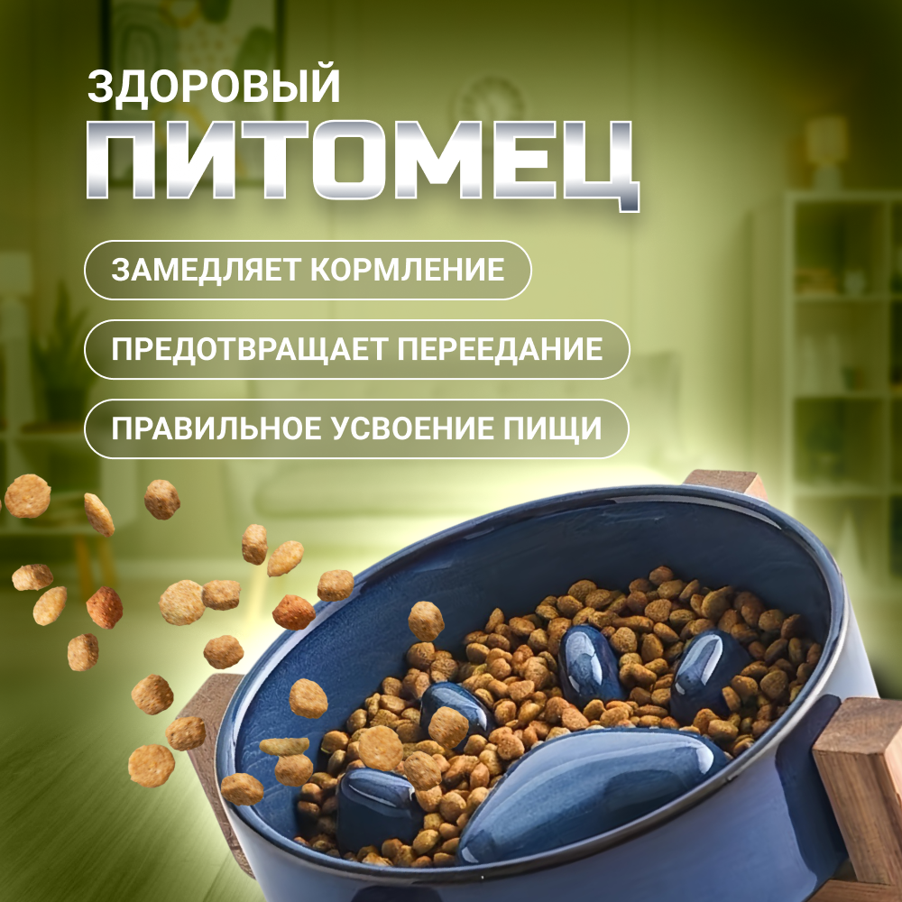 СохранитьМиска керамическая для животных ZooWell Aura 850 мл на подставке (для медленного кормления) цвет синий интересное:
