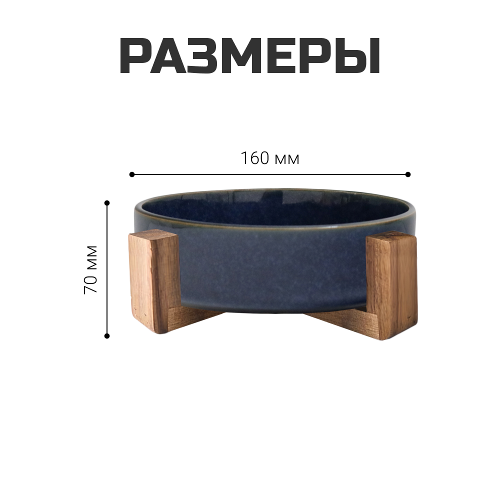 Миска для кошек и собак керамическая ZooWell LOFT на подставке, 850мл, цвет черный/синий