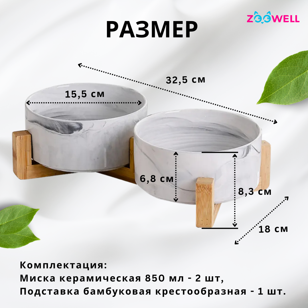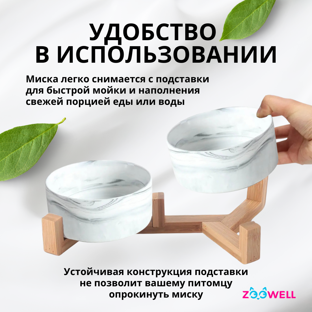 СохранитьНабор мисок для животных ZooWell Aura на деревянной подставке, цвет белый мрамор, 2 шт по 850мл интересное: