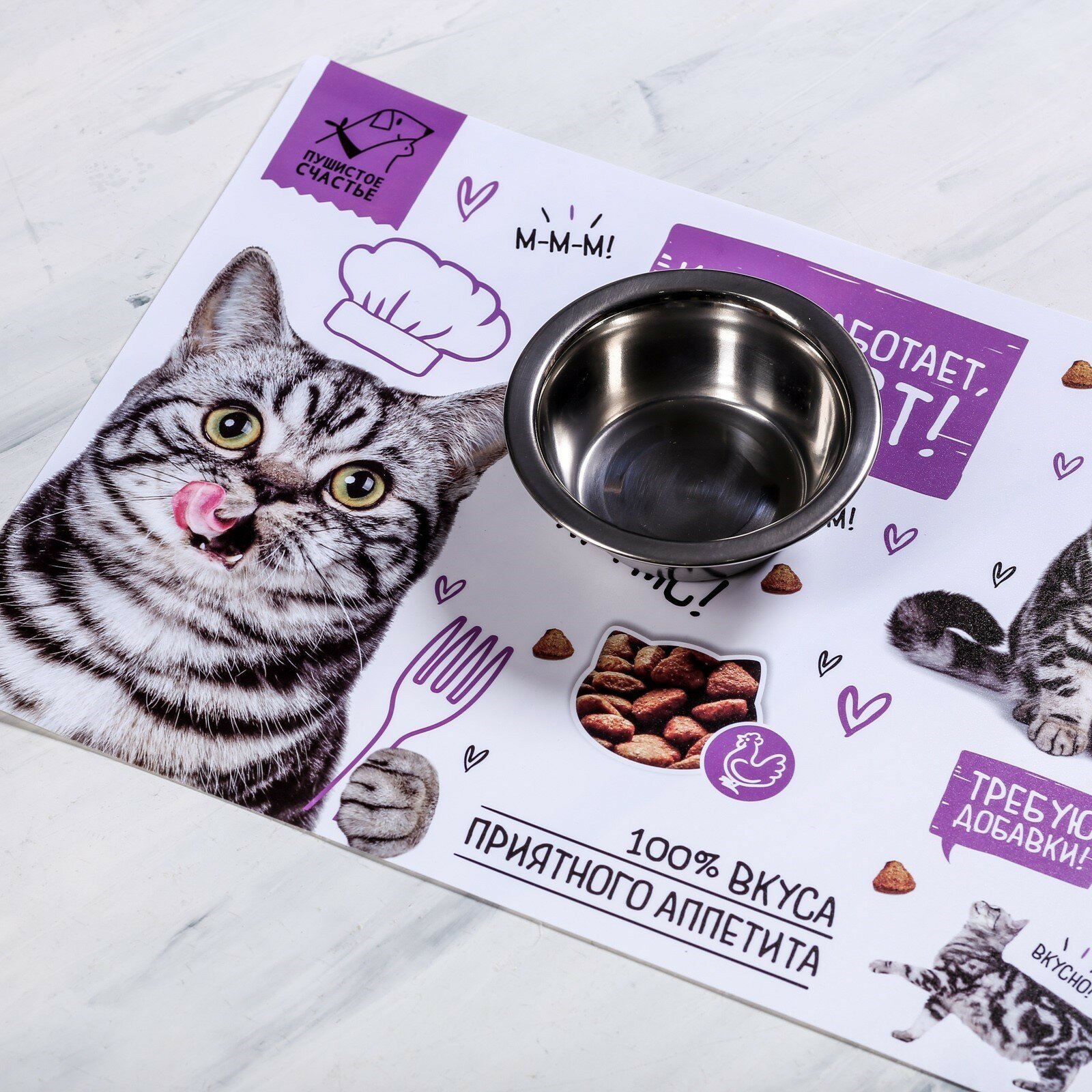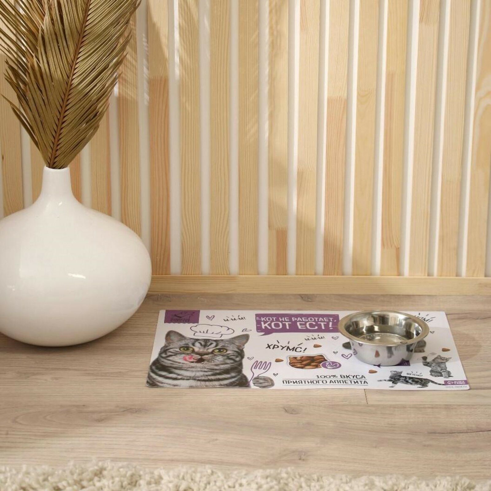 Коврик под миску для животных - Кот не работает, кот ест!, 43х28 см, 1 шт. интересное: