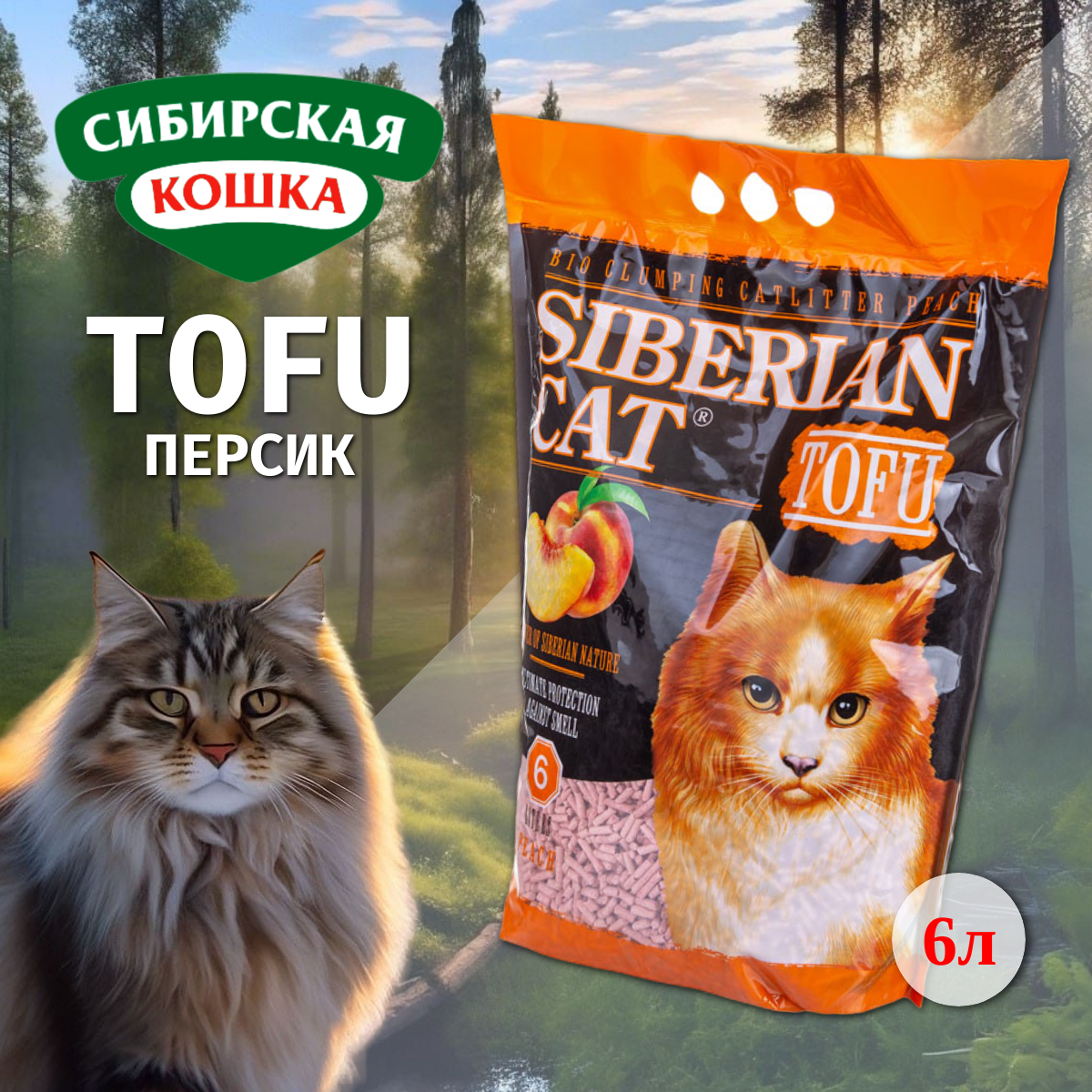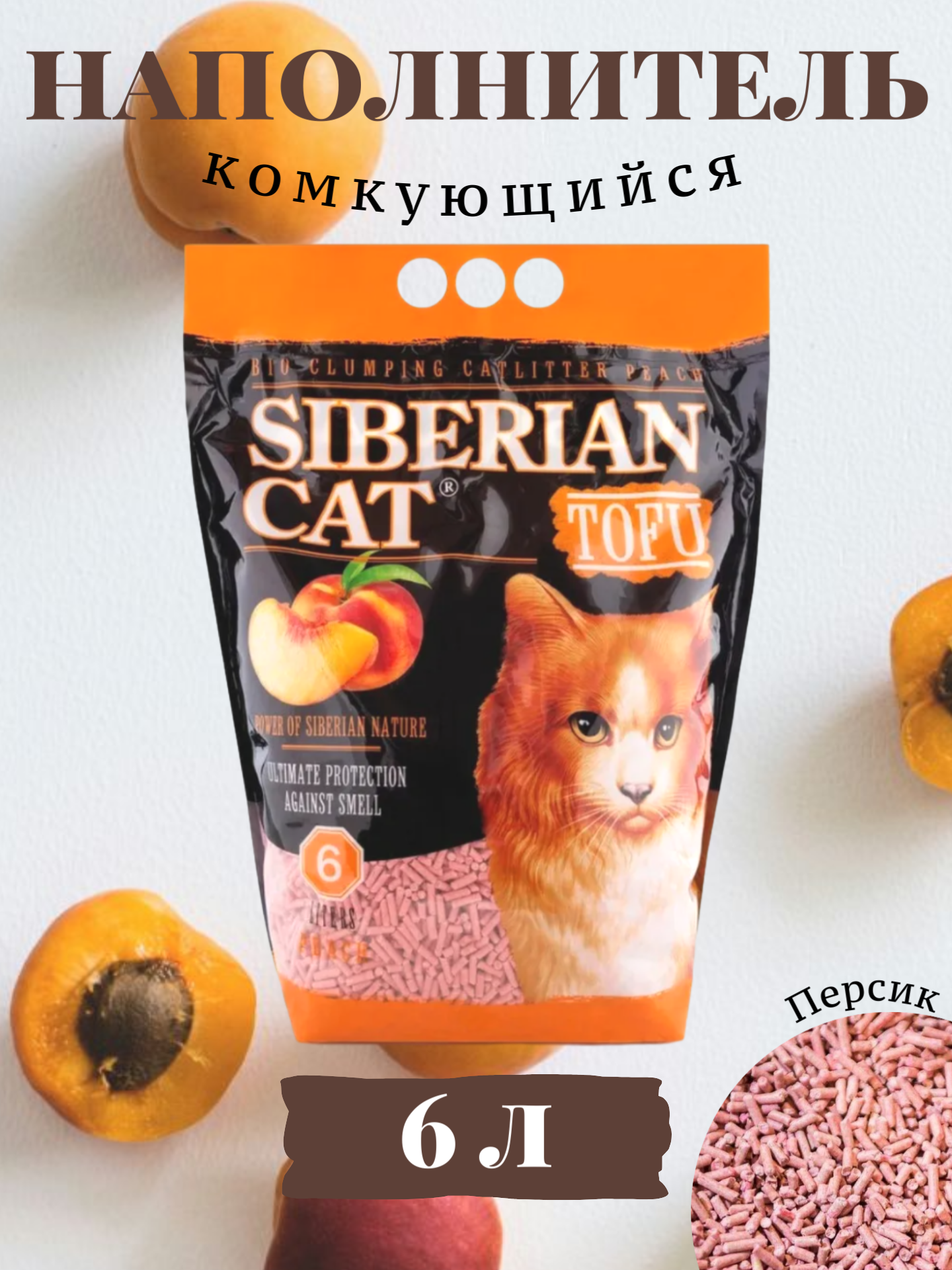 Наполнитель для кошачьего туалета 6л Персик СИБИРСКАЯ КОШКА, Растительный Натуральный Биоразлагаемый ТОФУ