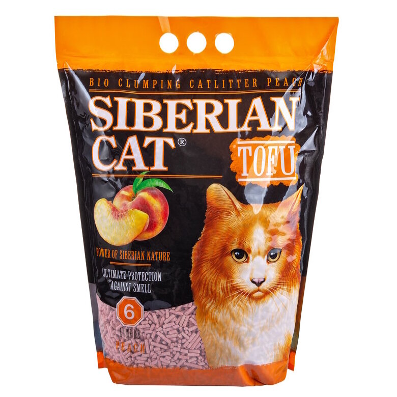 Сибирская Кошка "Персик" комкующийся наполнитель для кошачьего туалета из тофу, с ароматом персика - 6 л (2,8 кг)