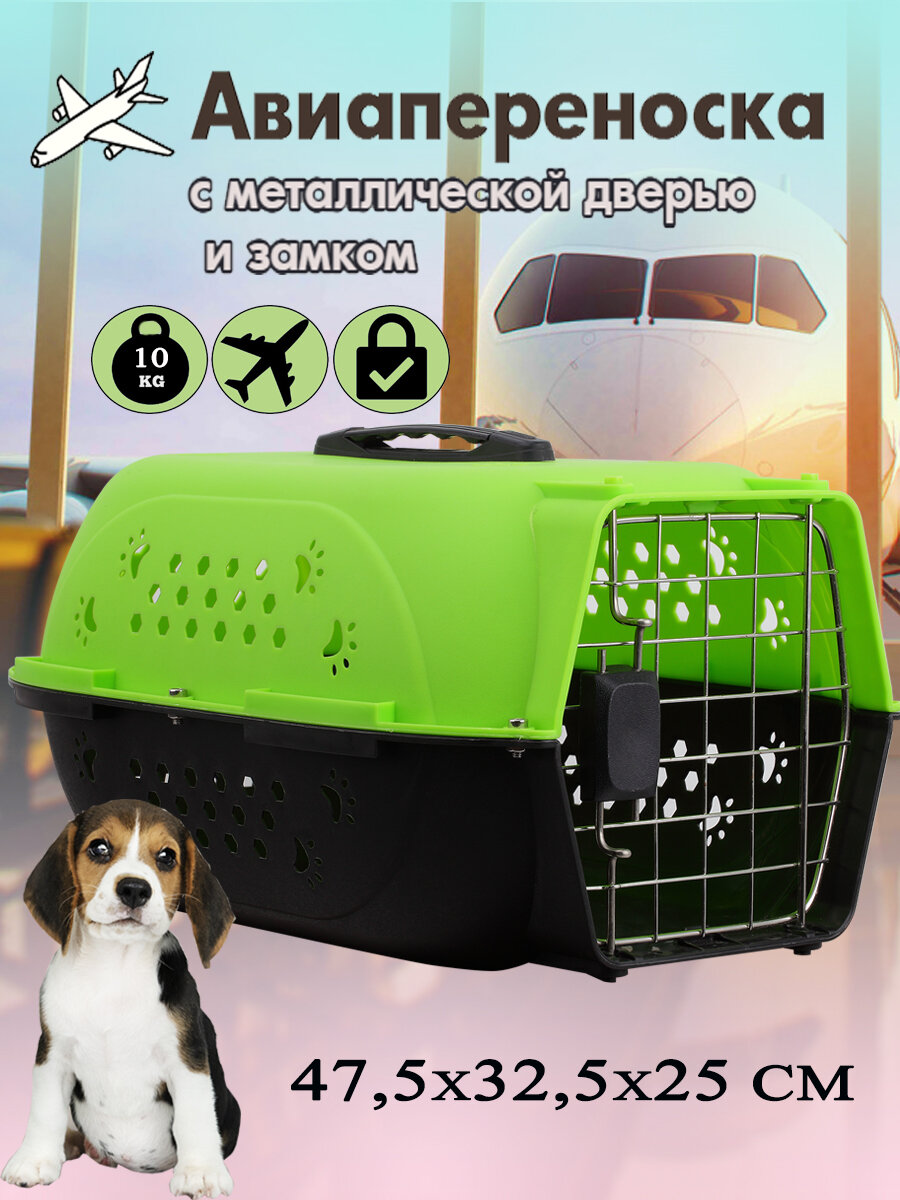 Авиа переноска для домашних животных "Чистый котик" 47,5х32,5х25 см, нержавеющая сталь, зеленый